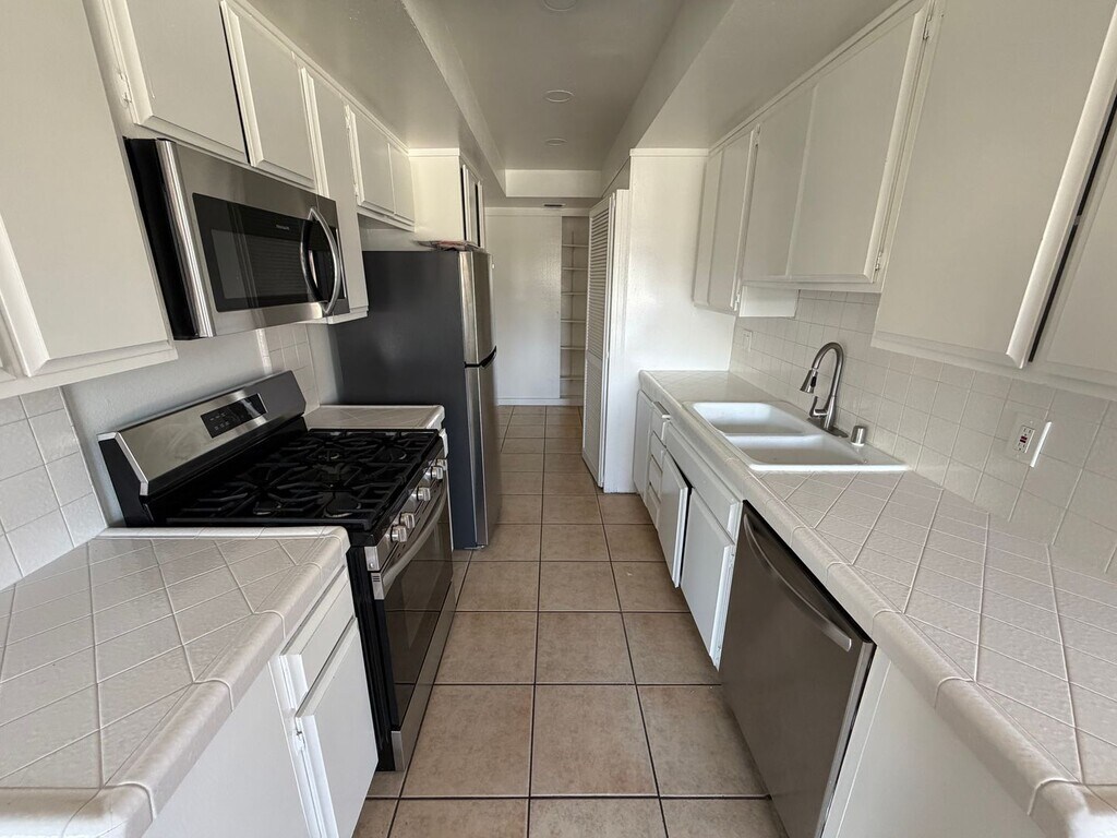 Gorgeous 2-Bedroom, 2-Bath Penthouse Unit in prime Westwood/Century City location. Bright and airy with beautiful, open views of the City and mountains. Upgraded, new modern Italian kitchen with white quartz countertops. Includes new stainless steel stove and dishwasher and in-unit washer and dryer. A spacious, open and bright Master Bedroom has a large additional office space. Walk-in closet plus a second closet. A tastefully done white modern Master bath. Second guest bedroom is bright and overlooks an open view. Other features: Upgraded white modern bathrooms. Beautiful light wood laminate floor. Recessed LED lighting throughout. Living room opens up to a pleasant balcony overlooking a wide open view of the City and the hills to the East. Building is quiet and has a lovely and peaceful common outdoor area with a pool and jacuzzi, surrounded by pine trees. Secured garage and two car large parking spaces - *included* in the lease. Minutes away from Century City shopping center, and a short walk restaurants, markets and shopping in Westwood. Minutes to UCLA and close to freeways. $4300 /month. 1-Year Minimum Lease. Includes water. And two parking spaces. Tenant pays for electricity and gas. $4300 Security deposit. 1 small pet (less than 15 pounds) OK.