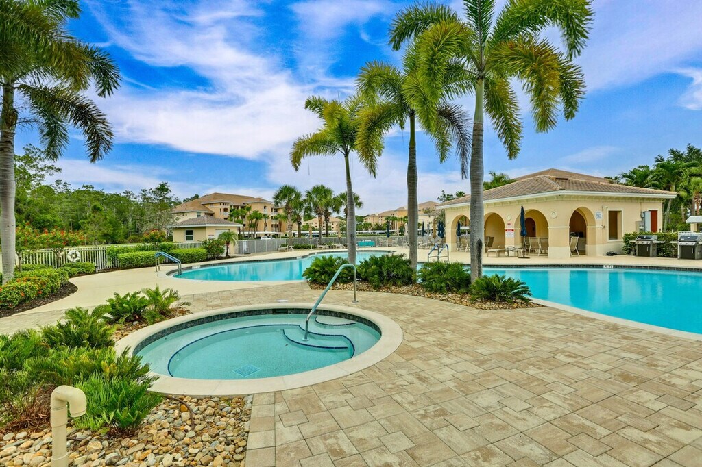Tastefully decorated 2 bedroom,2 bath second floor condo with common elevator. Enjoy your lanai with a private view of woods. Palazzo community has its own community pool and barbeque pit. Pelican Preserve offers a Town Center offering 2 outdoor pools,indoor lap pool & walking track,pickleball,tennis,spa,fitness center,2 restaurants,billiards room,theater,and so much more. Close to restaurants,shopping and the airport.