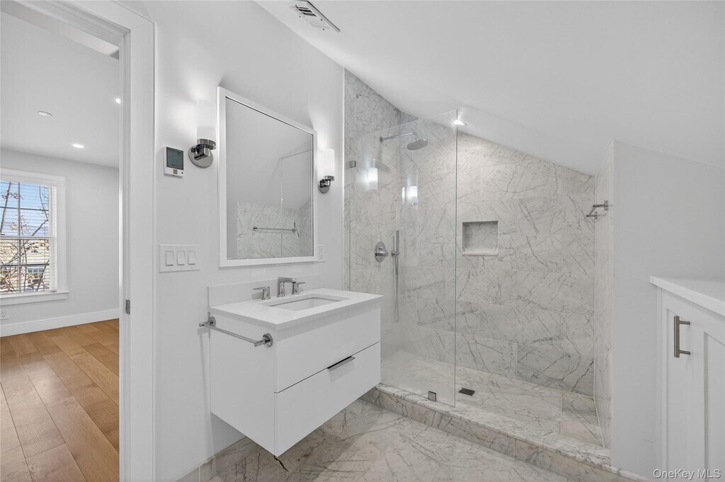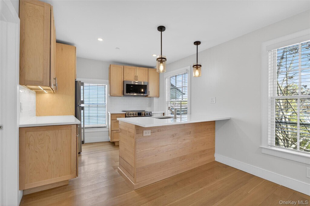 All newly renovated luxury apartment in 5-unit historic building in downtown Oyster Bay. White oak plank hardwood flooring,exposed wood beams,maple kitchen cabinets,quartz counters,center island,stainless steel appliances a large pantry and washer/dryer. Two bedrooms and one white marble bathroom with double sinks and glass shower door. Open concept living room,dining room area. High hats and new Andersen windows. Large,shared roof top deck with panoramic views of Oyster Bay and distant views Oyster Bay Harbor. High efficiency heat pump electric heat and Central Air. Wifi controls the heat,door locks and security pad. Private off-Street parking with electronic gate. Small pets considered. One year lease. Oyster Bay has lots to offer right out your door including Shops,restaurants,wine bar,galleries,park. SEE VIRTUAL TOUR AND FLOOR PLANS MLS ID KEY990213 Based on information submitted to the MLS GRID as of [see last changed date above]. All data is obtained from various sources and may not have been verified by broker or MLS GRID. Supplied Open House Information is subject to change without notice. All information should be independently reviewed and verified for accuracy. Properties may or may not be listed by the office/agent presenting the information. Some IDX listings have been excluded from this website. Prices displayed on all Sold listings are the Last Known Listing Price and may not be the actual selling price.