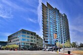 Very Rare 18th-Floor Penthouse Unit Smart Corner, Downtown San Diego, 1000 sq ft. Quiet 18th floor loft with unobstructed east-facing views of the city and mountains. This rare 18th-floor unit features high concrete ceilings, floor-to-ceiling windows, and an open floor plan filled with natural light. Interior includes new flooring throughout, custom wood cabinet doors, and custom door accents. Two private balconies provide excellent outdoor space with panoramic views. Remodeled kitchen features stainless steel appliances, dishwasher, granite countertops, and ample cabinetry. Brand-new GE in-unit washer and dryer included. Bathroom includes a sunken tub. Unit comes with one assigned parking space in the secure gated garage. Additional street parking is available on the adjacent block. Building offers a fitness center, rooftop patio with BBQ areas, and a Jacuzzi overlooking downtown. The building has fewer occupants than typical downtown high-rises, offering additional privacy and quiet living. Central air conditioning, energy-efficient systems, and smart home features included. Pet-friendly community dogs welcome with no additional deposit. Wheelchair accessible. Renter's insurance required. Located in the heart of downtown near Balboa Park, Little Italy, and the Harbor. Easy access to restaurants, shops, and major freeways.