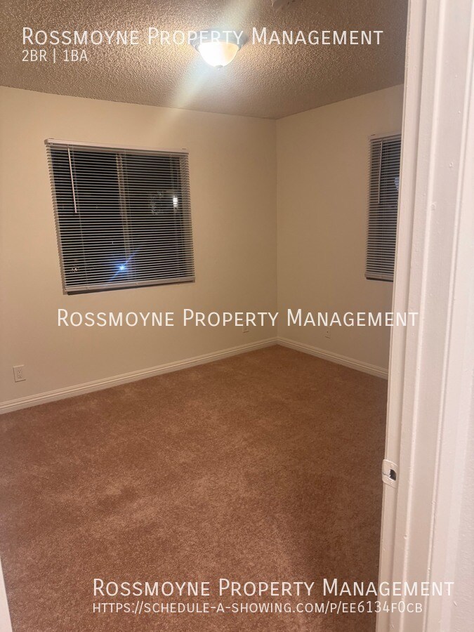 2 Bedroom, 1Bath Apartment in near Transportation & Shopping secured access building • New paint throughout. • New carpet • Updated kitchen granite countertops • Includes stove • Community Laundry • 2 Tandem assigned parking space plus storage • Clean & Ready for move-in. Paid water and trash. No smoking. Sorry no pets (ESA/Service Animals excepted). Good credit please. Renters Insurance required Deposit $1895.00 with one-year lease This home is for rent exclusively by Rossmoyne Property Management. Beware of any other individual(s) (even someone claiming to be the owner of the home) who might have directed you to schedule a showing — or might have scheduled a showing for you. Do not submit any application for this home with — or pay any fees or deposits to — any party other than Rossmoyne Property Management. If you have any questions or concerns, please contact: Rossmoyne Property Management For more information or to schedule a viewing Visit our website at Cal BRE 00659141