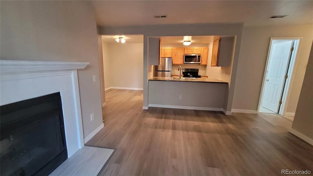 Beautifully Totally Updated 2 Bedroom, 2 Bathroom Condo in Prime Location! Step into this stylish, move-in-ready home featuring fully remodeled bathrooms with gorgeous new tile shower walls and floors, modern vanities, new bathtubs, sleek sinks, updated faucets, and contemporary light fixtures. Enjoy the warmth of brand new luxury vinyl plank flooring, new paint throughout, upgraded new baseboards, and classic six-panel doors. Relax on your private balcony with convenient extra storage space. Unbeatable location close to parks, trendy restaurants, with easy access to the mountains and downtown. Don't miss this fantastic opportunity to own a beautifully updated home in one of the area's most desirable neighborhoods! The family room has a wood burning fire place. Stackable washer & dryer in unit. Storage closet off covered balcony. Reserved parking space plus lots of visitor parking. Community pool. Walking distance to Cottonwood park and lake, grocery stores, and restaurants. Great location close to Federal Center, Belmar, near the foothills for easy access to mountain recreation. Reserved parking spot #2E. Condominium MLS# 3689631