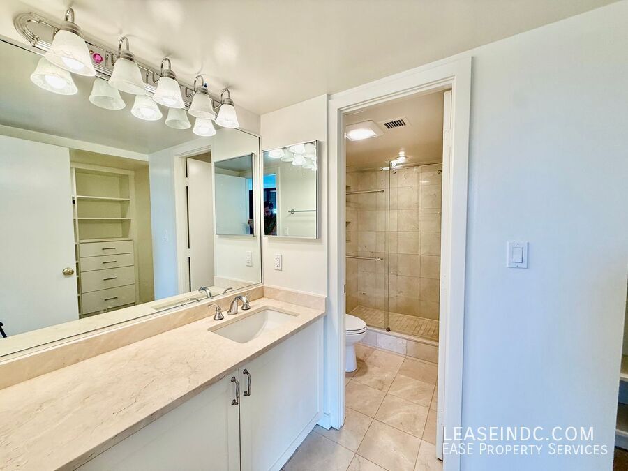 EASE Property ServicesWelcome to 1099 22nd Street NW, a stunning two-level residence in the heart of West End. Perched on the 8th floor, this nearly 1,400 square foot unit offers a layout that feels more like a townhome, with expansive living spaces and an abundance of natural light. Highlights include a private balcony, two oversized bedrooms, and two and a half bathrooms - all finished with thoughtful design. Set within a full-service building with a 24/7 front desk, this home combines space, comfort, and convenience in one of DC’s most desirable neighborhoods. Welcome home! Apartment Features: Beautiful hardwood flooring throughout main level Huge living room with tons of natural light from the floor-to-ceiling windows Plenty of space for a large dining table Private balcony with scenic views amongst the trees! Updated kitchen with granite countertops and stainless steel appliances Convenient powder room on main level Upstairs leads to the truly massive primary bedroom that is flooded with natural light Primary bedroom has two closets, one being a very large walk-in Ensuite primary bathroom with a walk-in shower Second bedroom suite on opposite side of the apartment and is also very sizable w/ a walk-in closet Second ensuite full bathroom with tub Separate laundry room with washer/dryer Tons of extra storage space throughout the apartment Building Features: 24/7 front desk concierge Fitness center Family room w/ kitchen Courtyard with tables & grills Parking: Street parking. Garage parking is occasionally available for rent from other unit owners in the building, but we can not guarantee the availability or pricing. There are also many garages nearby with monthly rentals. Utilities: Tenant is responsible for electricity. Water and gas are included in rent. Lease Terms: Available October 1st. Minimum 12 month lease. Application fee is $35 and includes a credit check. Security deposit equal to one month's rent due upon lease signing. Pets considered on a case-by-case basis pending approval by Owner. Tenant is responsible for $400 building move-in fee. Location: Perfectly situated between Georgetown and Dupont Circle, 1099 22nd Street places you at the center of it all. From award-winning restaurants and grocery stores to theaters and Metro stations, everything you need is just minutes away. George Washington University and Hospital, as well as major institutions like the White House, State Department, World Bank, and IMF, are all within easy reach. With parks and green spaces nearby, the location offers a rare balance of convenience, culture, and community.