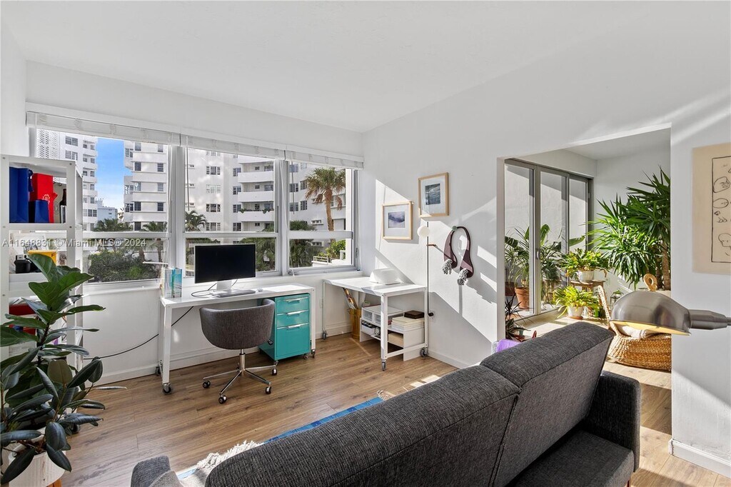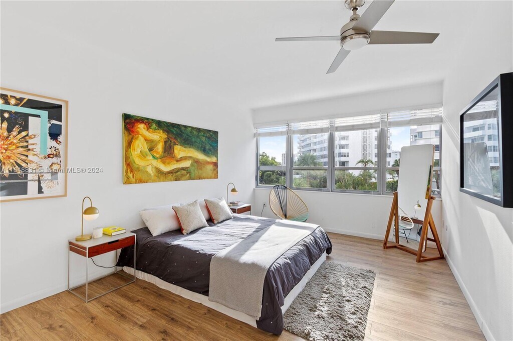Impeccable, stylish, fully furnished & renovated - 2 bed / 2 bath on Belle Isle with a balcony and covered parking. AVAILABLE START DATE - 01-15-2025. Unit features: high 9 ft ceilings, large balcony, wood floors, new hurricane impact windows, new A/C unit, a jetted Whirlpool bathtub in the master bath, 3 wall jet water shower system in the second bath, a Contemporary art collection, second bedroom / office with a convertible queen size sofa & lush plants. Please note maid/cleaning service 1 x per month & WI-FI are both included. The Costa Brava is a WATERFRONT condo featuring renovated lobby, gym, new EV Chargers & expansive roof top terrace. Fabulous location, across from the Standard and Belle Isle Park with great walkability to Sunset Harbour and Lincoln Road. Small dogs OK.