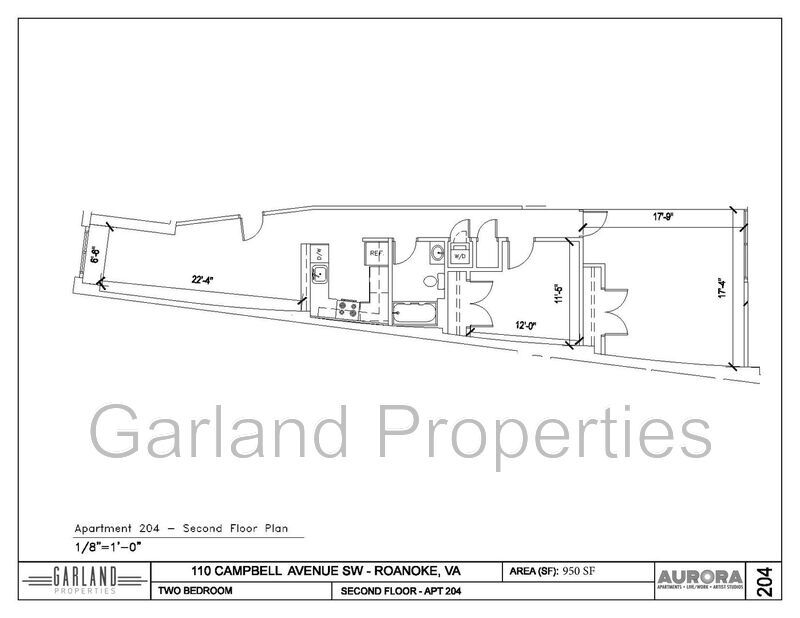 The Aurora is located in the Downtown Arts District of Roanoke, VA, and offers spacious apartments and versatile commercial studios. As a historic renovation, the Aurora is designed to foster a center for creatives, makers, and urban dwellers by providing flexible living spaces featuring natural light, open-format living, and proximity to downtown Roanoke’s urban center. In addition, the apartments feature amenities, including stainless kitchen appliances, in-unit laundry, modern design finishes, and Ikea kitchens. Overall, the building features 28 Apartments, 9 Artist Studios (including a performance arts studio, classroom space, common arts area, and gallery/exhibition space), a rooftop deck/Lounge, a dramatic 75-foot skylight that illuminates the interior three-story open atrium, and 2 Street-Level Commercial Spaces. Residents enjoy easy walks to Roanoke’s Historic Farmer’s Market, City Market Building, Natural Foods Co-Op, Elmwood Park, Public Library, Museums, Shops, and Dining. They also have various fitness options, including Ferguson Fitness and YMCA. The building has close access to the Roanoke Valley Greenways and is less than a block from the Smart Bus, which connects daily to Blacksburg and Lynchburg. Apartment Amenities: -Environmentally friendly Marmoleum flooring. -GREENGUARD certified Hanex solid surface kitchen counters. -Central heat/air. -Stainless steel appliances. -Washer/dryer in each apartment. -Ceiling fans in the living room and bedrooms. -High ceilings. -Individually controlled heat pump. -Ikea Kitchens. Community Amenities: -Secure building access. -Storage rooms available. -Community Recycling Program. -Non-smoking environment. -Walking distance to the YMCA and Ferguson Fitness. -Garage Parking is available 1/2 block from our location. Trash, water, and sewer is $50/month. Residents are responsible for electricity, which provides heating and cooling. Garage parking is available through Park Roanoke’s residential parking program. Pets are considered with a $200 nonrefundable deposit and a monthly fee. Deposit (equal to one month’s rent minimum) upon signing. Terms of the lease include one year’s commitment. For more information on our properties, visit Amenities: hvac, water, sewer, trash, secure building access