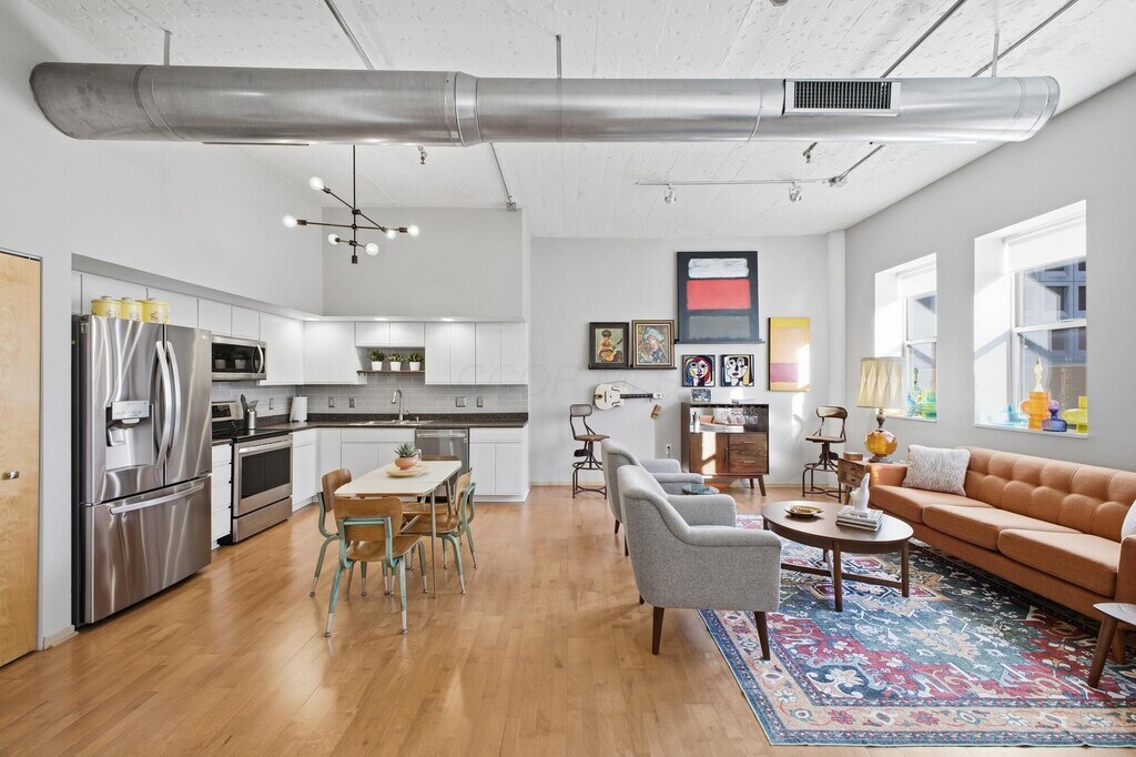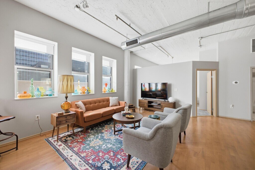 Experience upscale living in this impeccably decorated 1-bedroom,1-bathroom furnished condo at The Exchange Urban Lofts in the heart of Downtown Columbus. This stylish residence features modern finishes,an open-concept layout,and in-unit washer and dryer for ultimate convenience. Enjoy the comfort of a beautifully designed space with thoughtful décor and all the essentials for a seamless stay. The unit includes one gated surface parking spot,providing both security and ease of access. Perfectly located just minutes from top hospitals,popular restaurants,and entertainment,this loft offers the best of city living. Short-term leases are welcome!