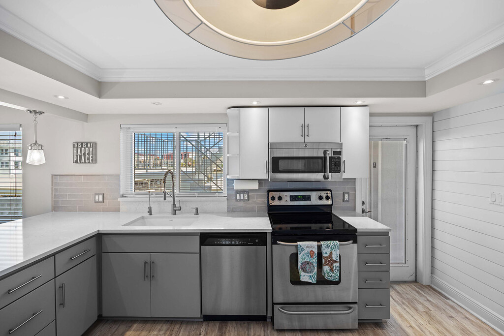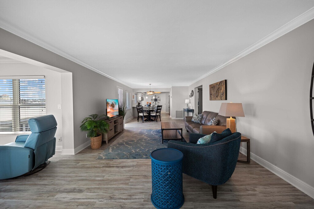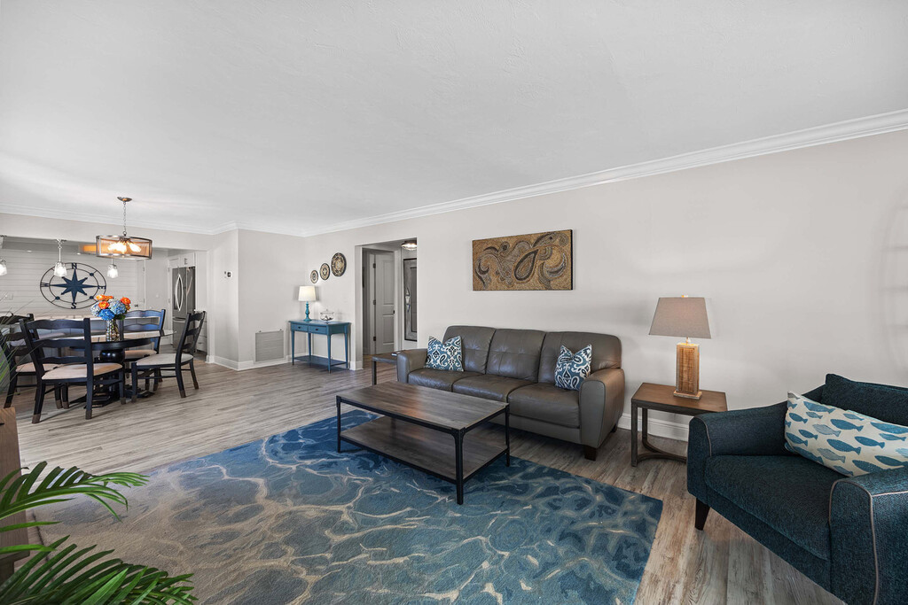 Chic 2 Bedroom + Den Vacation Rental in Olde Naples Escape to paradise in this beautifully updated 2-bedroom plus den condo in Olde Naples. With 1,350 square feet of luxurious living space,this end unit offers stunning bay views and is just steps away from 5th Ave,Tin City,Bayfront,and the iconic Naples beaches. This condo features coastal elegance with an open floor plan,chic furnishings,and stylish tile plank flooring throughout. Large windows with plantation shutters allow natural light to pour in,highlighting the beautiful interiors. Enjoy a modern kitchen fully equipped with stainless steel appliances and the convenience of a washer and dryer. Relax in the resort-style living environment with access to a heated pool and beautifully landscaped gardens. The second-floor unit offers elevator access,covered parking,and extra storage for ultimate convenience. Whether you’re looking to soak up the sun or explore Naples' vibrant dining and shopping scene,this condo provides the perfect setting for an unforgettable getaway in Naples' luxury living.