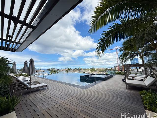 Live in the Grand Penthouse level of Victoria Place! A high-end one-bedroom unit with views of Kewalo Basin Harbor, coastline and city! This unit features fully automated screen blinds by Phifer, with blackout shades added to the bedroom. 10' ceilings, upgraded closet system, Wolf appliances, Sub-Zero refrigerator & wine chiller, quartzite countertops and custom cabinets in kitchen, marble flooring, counter and shower stall in bathroom! World-class amenities includes a Sunrise Lap Pool, an Infinity Pool, the Lauhala Pool House with a private pool, cabanas with barbeque grills and lounge, Chef's Kitchen, Wine Room, Theatre, Fitness Center and much more. Relax on the Sunset Lawn, the Terrace Lawn or enjoy something more private in the resort-style Women's Spa or Men's Spa both with a cold-plunge pool & Jacuzzi. Walking distance to fine dining & entertainment venues. No pets and no smoking. Tenant Insurance is Required. Tenant pays for electric, water/sewer, ac, cable/internet. Some photos are enhanced.
