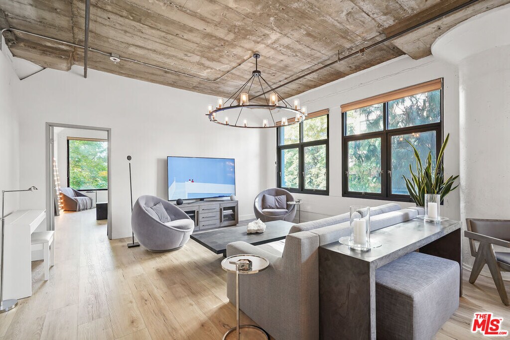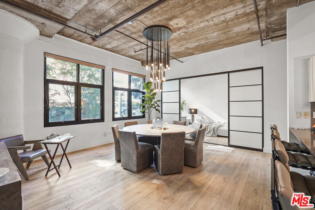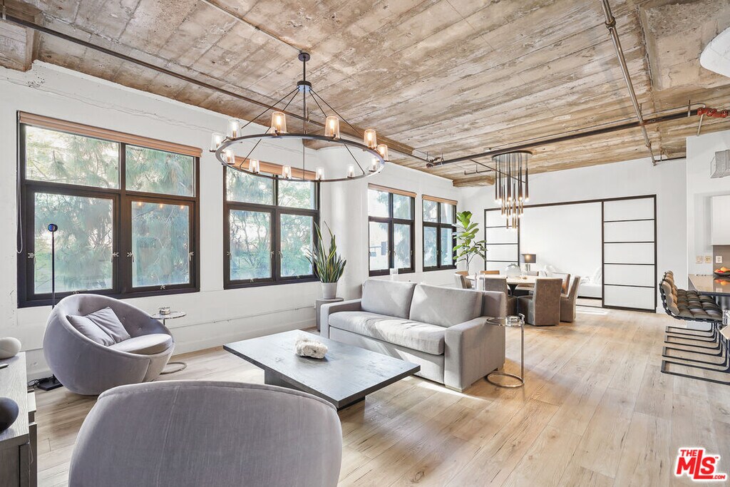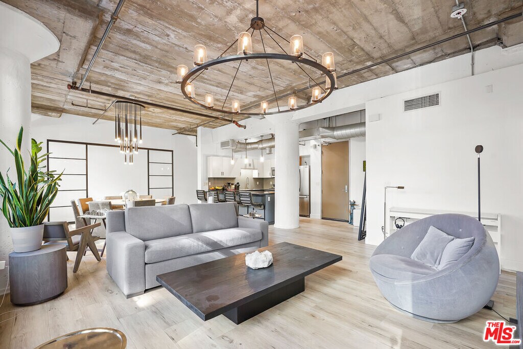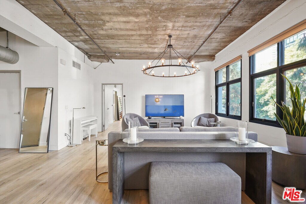 Unique courtyard-facing live/work loft at Grand Lofts. This quiet, below-grade unit is thoughtfully positioned along the interior courtyard, offering enhanced privacy and direct access to additional outdoor space - ideal for those seeking a flexible work-from-home or live/work environment. The layout is open lofts space and lends itself well to creative, professional, or studio use while maintaining comfortable residential living. Inside, the loft features 10+ foot ceilings, floor-to-ceiling windows, original concrete columns with exposed A/C ducting, concrete floors, and a well-appointed kitchen with stainless steel appliances. A generous walk-in closet and in-unit laundry add everyday convenience. Enjoy close proximity to Social District dining, Arena and L.A. Live, Whole Foods, FIDM Park, Pico Metro Station, and more. Two side-by-side parking spaces included, along with access to shared amenities with the neighboring Aven building, featuring a three-lane lap pool, indoor-outdoor fitness center, beach volleyball court, half basketball court, dog play and wash area, business center, BBQs, and more. MLS# 26742567