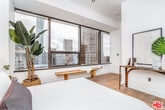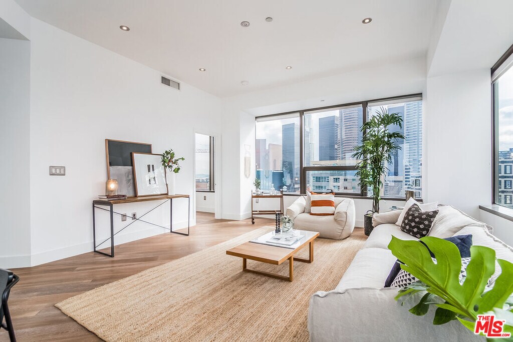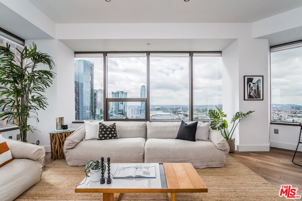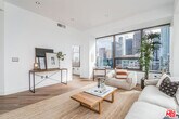 This stunning contemporary residence showcases floor-to-ceiling windows framing breathtaking panoramic views of DTLA's skyline. The open-concept layout features a sleek modern kitchen with GE Profile stainless steel appliances, granite countertops, and European-style cabinetry. The elevated bedroom offers a sense of separation and privacy, complemented by a spacious walk-in closet. Additional highlights include rich wood flooring throughout, an in-unit washer and dryer, and a spa-inspired bath with a soaking tub. Enjoy resort-style amenities on the spectacular 17th-floor Sky Deck complete with a heated infinity pool, elevated spa, cabanas, lounge beds, BBQ grills, wet bar, and fire-pit lounge with sweeping skyline vistas. Residents also have access to a state-of-the-art fitness center, media and conference rooms, EV charging stations and a 24-hour attended lobby. Ideally located near world-class dining, entertainment, and shopping at LA Live, The Bloc, Fig at 7th, and Whole Foods. ***Furnished. Some utilities and 2 parking spaces are included.*** MLS# 25604761