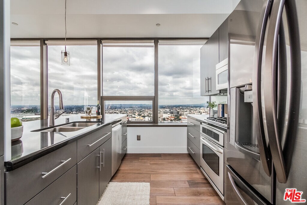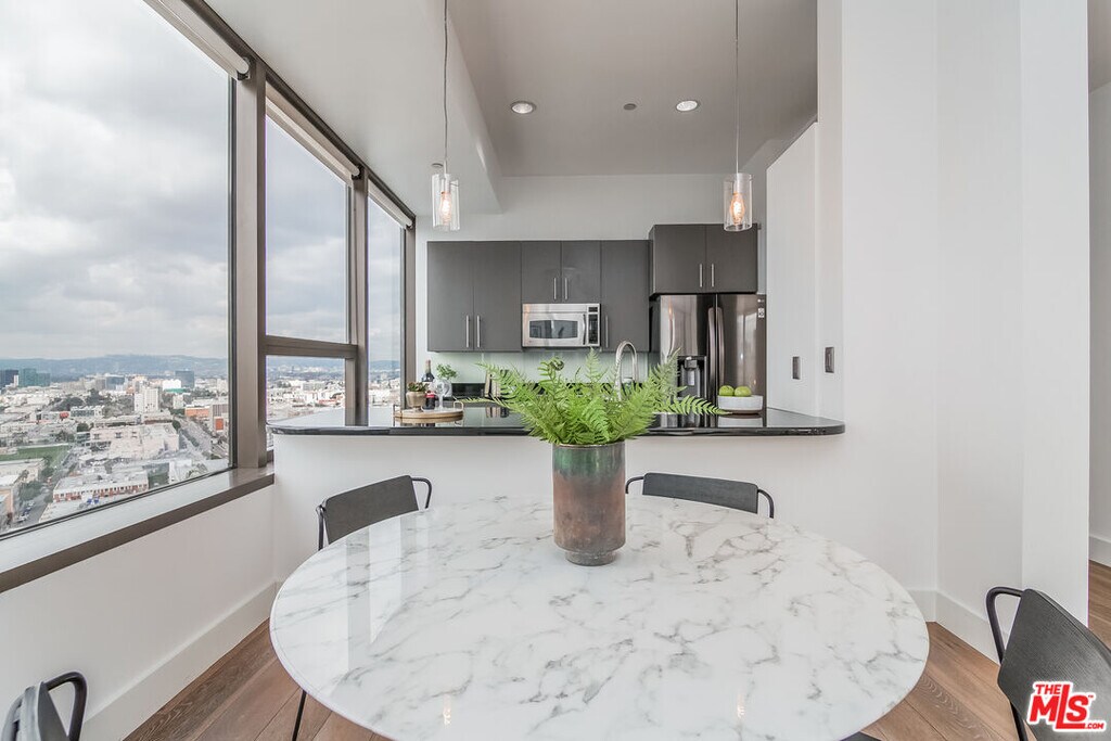 Updated kitchen with stainless steel appliances and granite counter tops. Hardwood floors. Tile in bathroom. A spacious and open raised bedroom withwalk-in closet. Spectacular views including Dodger Stadium and the Hollywoodsign. Comes with 2 PARKING SPOTS! Only a 9-minute walk to the 7th StMetro Center stop. Nearby schools include Para Los Ninos - Evelyn ThurmanGratts Primary School, John H. Liechty Middle School, and ImmaculateConception. The closest grocery stores are Green Life Market, Grocery OutletBargain Market, and Grocery Outlet Bargain Market. Whole Foods and Target inwalking distance. Nearby coffee shops include Rene' Cafe, Starbucks, and FrutaFresca- Fruit Cart. Nearby restaurants include Kabob Express, Togo'sSandwiches and It's Thai Casual Dining. The Bloc is an open-air plaza 10-minute walking distance with shops like Macy's store, LA Fitness, NordstromLocal, UNIQLO and the Sheraton Grand Los Angeles hotel 1100 Wilshire Blvd#1904 is near AECOM Technology Headquarters, Reliance Steel & AluminumHeadquarters and Pershing Square. 24-hour concierge and security in the lobby.