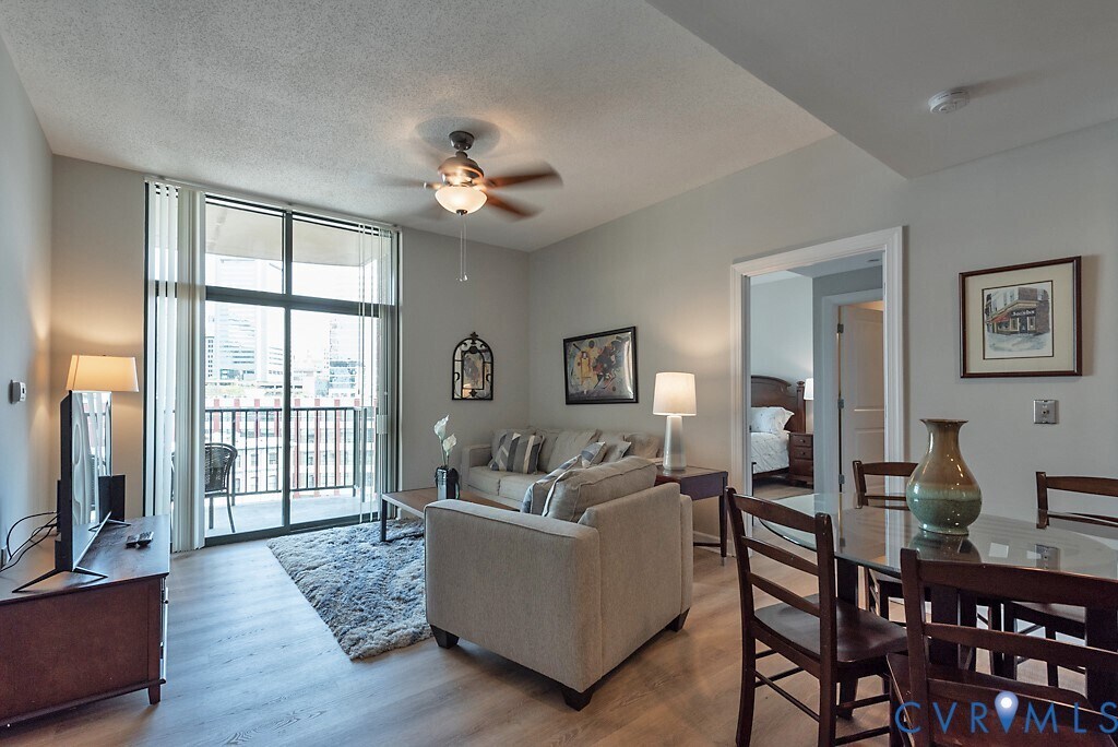 ALL FURNISHED ALL INCLUSIVE; furniture,housewares/accessories,power,cable,WiFi and 1 parking space in direct entry garage. You deserve the exciting and vibrant beat of Downtown Historic Richmond. This is a 2 bedroom 2 bathroom executive upscale condo on the 6th floor overlooking the Richmond skyline. This condo is fully furnished with 2 queen beds an awesome city of Richmond skyline view. This condo HAS ALL hardwood floor (tile in bathrooms) and has 2 balcony accesses with patio windows and screen doors. Owner pays monthly condo fees which includes access to clubhouse common area snow removal and trash removal. AVAILABLE SUNDAY FEBRUARY 15th FOR ONLY $105 PER DAY (minimum 30 day stay). One time nonrefundable cleaning reset fee of $400 due upon lease signing. Riverside on the James awaits with breathtaking views from your balcony and windows. Just bring your suitcases and you are set. Walk to work restaurants shopping activities parks clubs music venues sporting events museums art galleries festivals and the Richmond nightlife. Do not go where the action is BE where the action is.