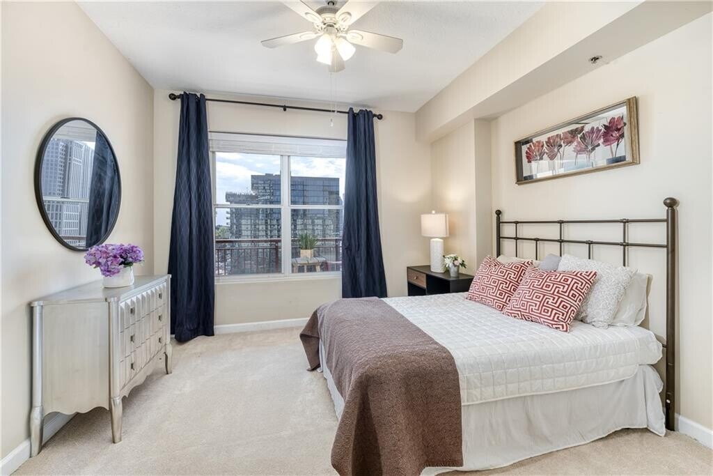 Welcome to Park Central,city living at its finest! Step inside to a meticulously maintained unit with stunning 12th floor skyline views. Option to lease FULLY FURNISHED,but owner can remove some/all furniture on request. Beautiful hardwood floors in main living space,kitchen complemented by granite counters,stainless steel appliances,and a view towards the family room with soaring 10-foot ceilings. Step out onto your private balcony for a breath of fresh air and take in the vibrant cityscape. It's a space that truly embodies relaxation and style. Enjoy a 5-star amenity package,which includes a state-of-the-art fitness center,including an indoor lap pool and a designated yoga room. You won't find better amenities in ATL! 24-hour concierge service,community club living room and bar space on lobby level,plus a business center. Ample gated visitor parking. Unwind at the breathtaking rooftop terrace or take a dip in the outdoor pool. Located just one block from Piedmont Park,you'll have easy access to the best of Atlanta. Walk to MARTA,the High Museum,Fox Theatre,and explore nearby shopping and dining spots. This condo offers an unbeatable blend of luxury and location,making it the perfect place to call home. MLS ID 7743695