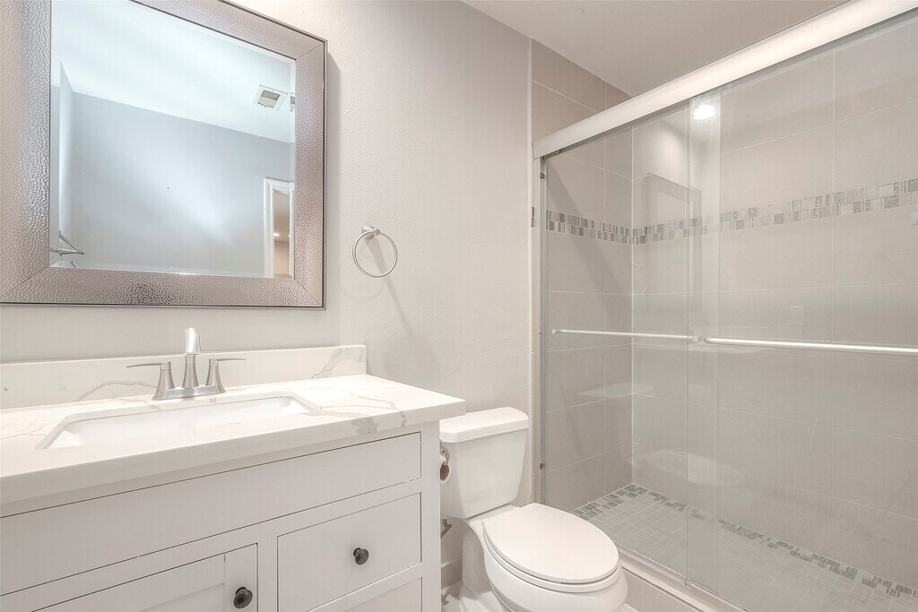 Cozy 1 Bedroom 1 Bath condo in a quiet gated community of Oaks at Riverbend in Stafford. This remodeled unit has adorable floorplan,it's comfortable and maximizes space. Living/dining/kitchen downstairs and bedroom/bath/utility room up. Fresh paint,large neutral tile and wood burning fireplace on ground floor; kitchen has granite countertops with contemporary backsplash. Specious high ceiling bedroom with 2 closets + built-in shelves and updated bathroom with walk-in shower. No carpet,tile and wood flooring and plenty of closet space through out the condo. Refrigerator,washer & dryer included. 1 assigned carport parking and guests parking through out the complex. The condo is move-in ready,come to see this one soon! MLS# 64223696