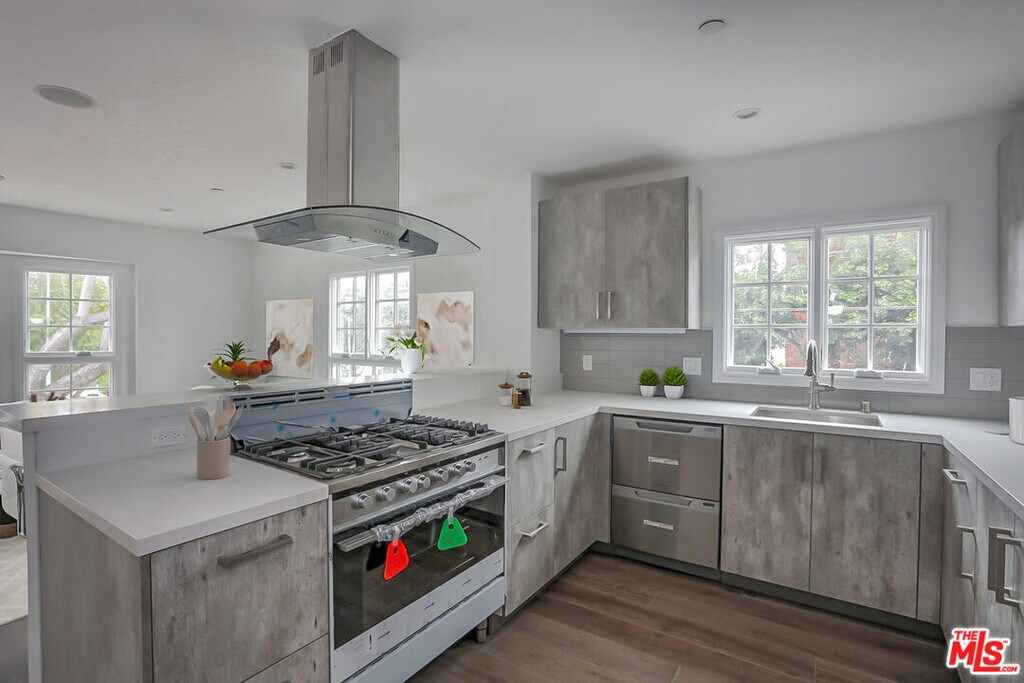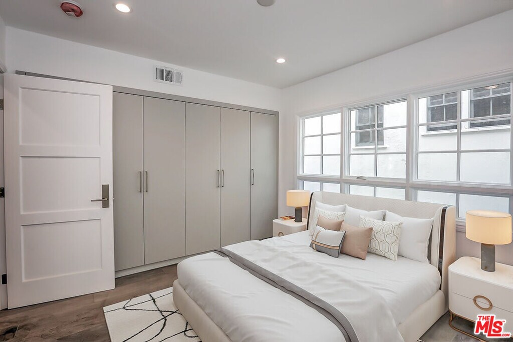 Newly renovated unit in the heart of prime West Hollywood featuring high-end, modern finishes throughout. This bright and spacious 1-bedroom, 1-bathroom apartment offers an open-concept layout with wide-plank hardwood floors, recessed lighting, and abundant natural light. The contemporary kitchen is equipped with sleek custom cabinetry, quartz countertops, a Fisher Paykel smart refrigerator and stove with double dishwasher, and a wall-mounted range hood. A generous breakfast bar opens to the living area, making the space ideal for both everyday living and entertaining.The living area flows seamlessly to large windows and French doors, enhancing the airy feel of the unit. The bedroom is well-sized and includes custom built-in closets for ample storage. The modern bathroom features a floating vanity and a glass-enclosed walk-in shower with clean, refined finishes.Additional highlights include an in-unit washer and dryer, updated systems, and a thoughtfully designed layout. Ideally located just moments from West Hollywood's best dining, shopping, and nightlife, this move-in-ready residence offers comfort, style, and convenience. Square footage is approximate and based on available information. MLS# 26636453