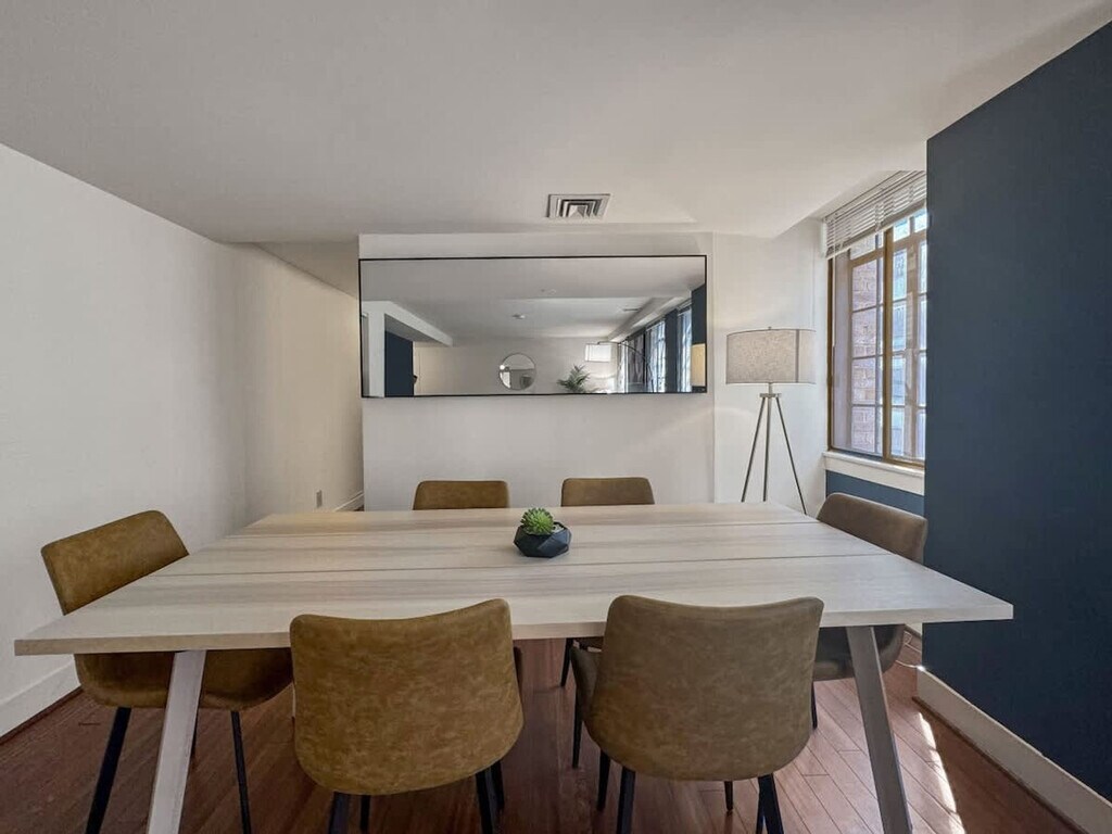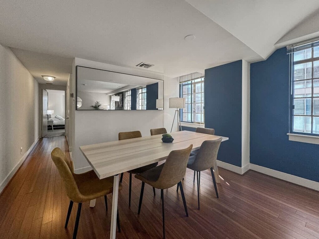 Located in the heart of Philadelphia's vibrant Center City, this 1-bedroom apartment offers an ideal blend of urban convenience and modern living. This prime location places you within walking distance of some of the city's most iconic landmarks, cultural attractions, dining hotspots, and shopping destinations. This inviting space combines modern comfort with convenient amenities, perfect for your stay in the city. Sleep comfortably in the spacious bedroom featuring a queen-sized bed, along with a crib for families traveling with infants. There's also a dedicated workspace, ideal for remote work or studying. Relax in the cozy living area, furnished with a comfortable sofa bed and a smart TV for entertainment. Cook meals with ease in the fully equipped kitchen, complete with modern appliances and essential cookware. Refresh in the sleek bathroom offering a shower/tub combination and complimentary toiletries. This property offers more than just a place to stay—it’s a lifestyle. Take advantage of premium on-site amenities, including a full basketball court for a friendly game or solo practice, and a modern gym equipped with everything you need to stay on top of your fitness routine. Centrally located in Center City, you're surrounded by renowned restaurants, theaters, shopping centers, and cultural attractions. Explore nearby landmarks like the Philadelphia Museum of Art, Rittenhouse Square, and the lively atmosphere of Avenue of the Arts. Smoking is strictly prohibited inside the property. A cleaning fee of $500 will be charged for any violation. Check-in time is after 4 PM, and check-out time is by 10 AM. Late check-outs without prior approval will incur additional charges. Please dispose of garbage in the designated bins and do not leave trash outside the unit to avoid attracting pests. Treat the property and its contents with respect. Any damages will be charged to the guest. Ensure that the shower curtain is kept inside the shower basin while showering to prevent water from spilling onto the floor. [SI]