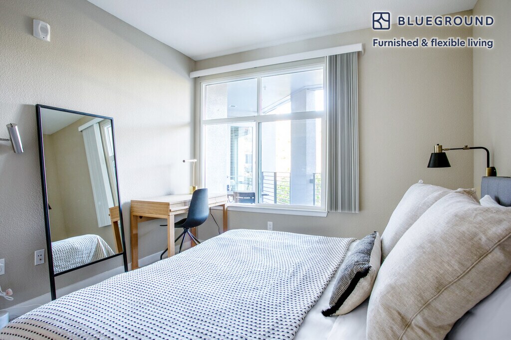 Ofrecemos precios personalizados por cualquier duración. Las tarifas pueden variar según las fechas exactas de mudanza. La tarifa para esta casa comienza en $5,160* / mes. Visita nuestro sitio web e ingresa tus fechas de estadía para ver los precios actualizados para tu reserva específica. *El precio cotizado es: (1) según la mudanza en el primer día en que el apartamento está disponible, (2) aplica solo si se factura por adelantado, puede ser más alto si se factura en múltiples pagos, (3) exclusivo de cualquier impuesto o servicio público. Asista y comience a vivir desde el primer día en South Bay con este sofisticado apartamento Blueground de dos dormitorios. Le encantará regresar a su hogar en este hogar con vista a las montañas, cuidadosamente amueblado, bellamente diseñado y completamente equipado. (ID #SFO381) Diseñado pensando en usted Magnífico mobiliario, cocina totalmente equipada, televisor inteligente y altavoz inalámbrico premium son solo algunas de las comodidades que encontrará dentro de este apartamento de dos dormitorios. Con una ubicación ideal en South Bay, también encontrará mucho para disfrutar al aire libre. Cuando esté listo para relajarse, estará encantado de descubrir que todos los dormitorios de Blueground cuentan con colchones de calidad superior, sábanas de lujo y toallas acogedoras. Nosotros nos encargamos de todo para que usted pueda simplemente presentarse y comenzar a vivir. Este apartamento también ofrece lavandería en el apartamento. Dormir cama King, cama Queen de 70,8 pulgadas/180 cm , servicios de 63 pulgadas/160 cm Los servicios del edificio exclusivos de este dormitorio incluyen: - Área de barbacoa - Secador - Ascensor - Gimnasio - Piscina - Lavadora - Aparcamiento - Se permiten mascotas Llegada y asistencia continua ¡Todo el apartamento es suyo! Un miembro del equipo de Blueground te dará la bienvenida personalmente o te dará instrucciones de auto check-in. Durante su estancia, tendrá acceso a nuestro equipo de experiencia del cliente a través de la aplicación Blueground. Puedes programar limpiezas adicionales, enviar solicitudes de mantenimiento y ver las recomendaciones de nuestro vecindario con solo unos pocos toques. Compartiremos todos los detalles tras la confirmación de su estancia. Con una ubicación ideal Este apartamento amueblado está ubicado en Mountain View, en el condado de Santa Clara. Su nombre se debe a las inigualables vistas de las montañas de Santa Cruz. Ubicado en el extremo sur del área de la bahía de San Francisco, los residentes disfrutan de los numerosos parques, específicamente Shoreline Park, el más grande de Mountain View e incluye un anfiteatro y un campo de golf. Camine o corra por el sendero de la bahía de San Francisco. Además, Stevens Creek pasa por Mountain View y se vacía en Shoreline. Un sendero pavimentado para peatones y bicicletas corre junto al arroyo, ideal para los amantes de la naturaleza. Las ciudades cercanas de Palo Alto, Los Altos y Sunnyvale se conectan fácilmente mediante el servicio de autobús y tren. Otras cosas a tener en cuenta Los servicios del edificio pueden tener un costo adicional. Este apartamento Blueground tiene opciones de arrendamiento flexibles, lo que te permite reservarlo por un mes, un año o más. Las mascotas son bienvenidas, aunque se aplican límites de peso y restricciones de raza y pueden incurrir en cargos. El estacionamiento se ofrece según la disponibilidad y está sujeto a un cargo. Nos enorgullecemos de asegurarnos de que cada foto que se muestre se tome en nuestros propios apartamentos con nuestro mobiliario real. Dicho esto, actualizamos regularmente nuestra decoración y disposición de muebles, que pueden diferir de lo que se muestra en la imagen.