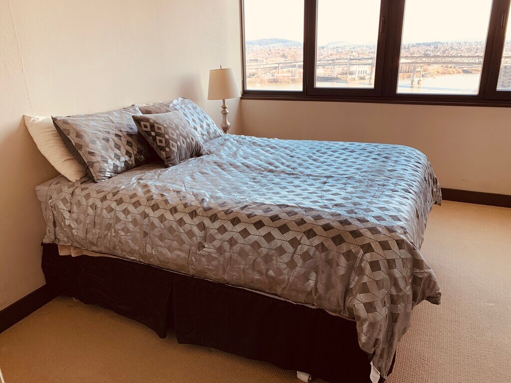 Fully Furnished Condo in the heart of the University-Cultural district near downtown Portland. 1 Bedroom, 1 bath, furnished including linens, towels, all kitchen utensils and appliances. Amazing 180 degree view of River and Mountains. Available early February 2026. Privately owned so talk to us about how we can help you lease and what we can do to make your stay more enjoyable. Garbage/water/sewer and convenient free laundry facilities included in owner paid HOA fee. Also electricity and internet paid by owner. No utilities for tenant to pay. Streetcar and bus lines in front of building. 3 blocks from light rail line. Walking distance from restaurants, food carts, and live theater. Additional storage area in basement. Building has secured entries. Living room has floor to ceiling windows with unobstructed view of the Willamette river and Mt Hood. Balcony off living room. Pool available in summer, spa most of year. One parking space included in secure basement garage with convenient access to elevator to unit floor. Absolutely No smoking in unit or balcony, or all Condo common areas. Call/text/email me for details and to View. Rent varies based on term of lease length - $2150/mo for 6 month or longer lease, minimum lease 4 months at higher rent Refundable security deposit $1000, refundable key deposit ($50), background check free. HOA one time move in/out fee $300 (pre-move Condo HOA orientation required, will consider rebate for half of move in fee on 6 month or longer lease). IMPORTANT: Any Email reply must include phone number for us to contact or we will not respond. If you text you must expect a text in reply, I will not reply to your initial texted email address. No out of country inquiries please.