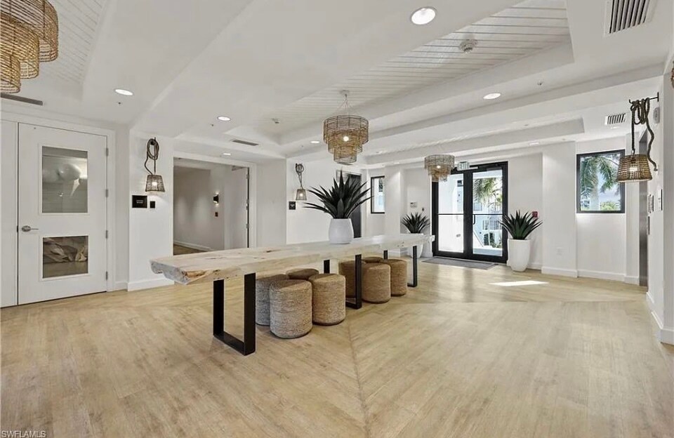 Now Offered Fully Furnished – Brand-New Designer Interiors. This beautifully updated condo is now fully furnished with all-new designer furniture, including brand-new beds, premium bedding, and stylish decor throughout. The kitchen has been completely outfitted with new pots and pans, dishes, glassware, and silverware, making it fully turnkey and ready for immediate enjoyment. Everything in the home is fresh, modern, and unused – perfect for someone seeking a clean, elevated living space without the hassle of furnishing. Preferred lease term: annual renter. Seasonal or short term stays may be considered at adjusted rates. The condo comes with amenities only found in luxury resorts. The following is a sampling of the amenities: Pool - a 3,200 square foot beach entry, resort style, heated pool with two 90' lap lanes, two hot tubs & private poolside cabanas. Cabana Bar with refrigerators, ice makers & iPad to stream your playlists on the sound system. All surrounded by large screen TV's, multiple fire pits, grilling areas, putting green, Bocce ball, hammocks & life size chess set. Fitness Center - state of the art facility located just off the pool deck Social Room with a full size bar, TV's, billiard table, fire features & a full kitchen. Also located just off the pool deck. All are located on the 2nd floor. The same floor as your unit. Entertainment / Game room with a full size bar, large screen TV's, air hockey, foosball, shuffleboard table, ping pong, video arcades, card tables & a plethora of board games. Theater Room- complete with 12 theater-style recliners in a stadium seating format Other amenities - Yoga studio, coffee shop & 6 hotel room suites for your visiting guests Walk to 5th Avenue- the condo is located on Central Ave, just blocks away from the Naples shopping & restaurant district. Plus, it's right across the street from Baker park & less than a mile from the beach. Don't want to walk? Let our free shuttle take you! Parking- Indoor reserved parking just a few steps from the stairs & elevator Storage unit- a reserved climate-controlled lockable unit is reserved for you in the parking garage just a few steps from your reserved parking space Our condo is an END UNIT on the 2nd floor (the first floor is the parking garage) - a perfect location in relation to your garage parking space & side door entrance. So skip the elevator and long hallway by using the side entrance, walk up one flight and you're at your front door. Plus, the Pool, Social Room & Fitness Center are also all on the 2nd floor so no need to take the elevator. Counter stools, end tables and more art/ accessories coming soon. Also -65" tv to be hung in family room. No pets & no smoking please. Type: Condo Year built: 2020 Heating: Forced air Cooling: Central, Other Parking: Reserved Parking space in gated garage Interior details Bedrooms and bathrooms Bedrooms: 2 Bathrooms: 2 Full bathrooms: 2 Flooring Flooring: Tile, Carpet Heating Heating features: Forced air Cooling Cooling features: Central, Other Appliances Appliances included: Dishwasher, Dryer, Washer, Microwave, Refrigerator, oven, stove and garbage disposal. Laundry features: In Unit Other interior features- Balcony Total interior livable area: 1,407 sq ft Property details Parking Total spaces: 1 Parking features: Garage - 1st floor Property Private pool: Yes Spa included: Yes Exterior features: Stucco View description: City Construction details Type and style Home type: Condo Condition Year built: 2020 Building details Other building information Structure type: Contemporary Community and Neighborhood Details Community Community features: Fitness Center Location Region: Naples Other Other facts Balcony Poolside Cabana Community Park(Bakers) across the street Cooling System: Air Conditioning Social Room Game Room Theatre Hot Tubs Internet Access Laundry: In Unit Parking Type: Garage (Secure) Southern Exposure
