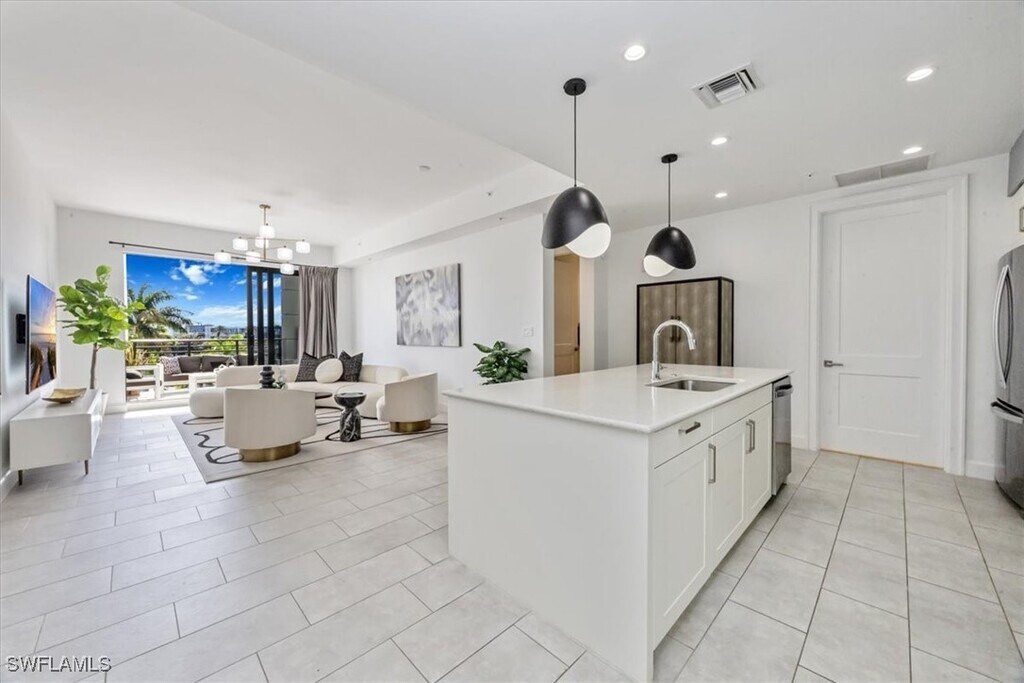This former Model home with 2 bedrooms + den and 2 baths,creates an inviting contemporary space with the natural light you would expect in a Naples coastal retreat. The luxurious primary suite offers a king-size bed and large walk-in shower. The guest bedroom has a queen-size bed for guests with ensuite bath. The den features a full-size sleeper sofa and a custom built-in desk. Entertaining is effortless with the oversized kitchen island and ample seating for family and friends. The living room offers a comfortable couch,2 side chairs,and a new 65" Class Bravia OLED Smart TV and SONOS. Floor to ceiling glass doors lead out to the lanai with 2 chaise lounges and a table for outside dining. Eleven Eleven Central amenities include an infinity pool,fitness center,social room,game room,movie theater,grilling area,fire pits,cabana bar with TVs,electric car charging stations,putting green,life-size chess board,Bocce,and many planned social events throughout the season. The private shuttle will take you to the Gulf beaches or to 5th Avenue and 3rd Street or the world-class shopping and dining are only about 5 block away! Live exceptionally in Eleven Eleven Central!