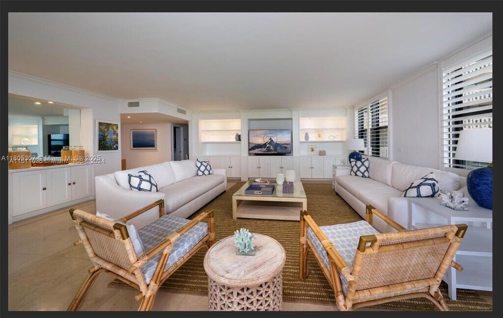 Seasonal rental 2 Bed 2 Bath elegance, fully furnished, beautifully decorated, and completely renewed, in the exclusive Key Biscayne. Located in the oceanfront Towers, this condo offers stunning Bay views, ceramic floors, and abundant natural light. The sleek open kitchen features brand-new appliances, while the spacious 1,400+ sq ft layout is move-in ready. The master bedroom boasts an en suite bathroom and a large walk-in closet for ultimate comfort. Enjoy private beach access, 24-hour security, gym, sauna, tennis courts, BBQ areas, kids’ playroom, party room, on-site restaurant, and more. An effortless blend of luxury and comfort—easy to show!