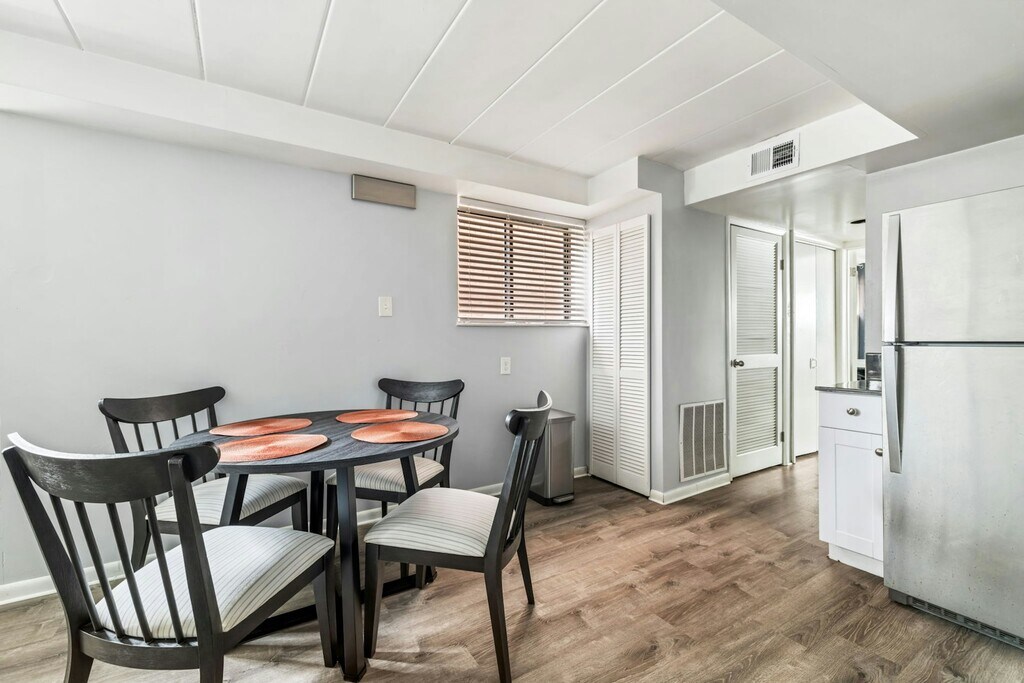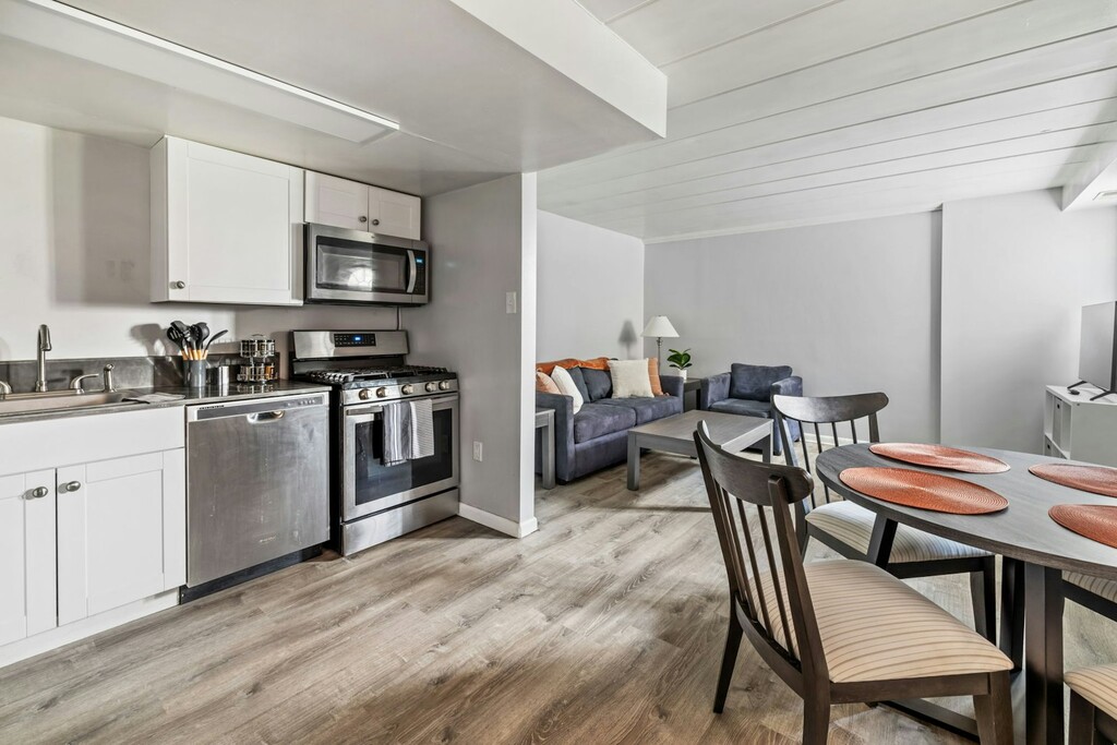 Furnished and updated apartment with off-street parking space that's perfect for traveling professional seeking a mid-term rental. Tucked away, yet only a few blocks to Carson Street. Space includes fresh paint, beautiful flooring, bright, modern, living room, dining area & fully equipped kitchen (coffee maker, instant pot, air fryer, blender, kettle). Newer stainless appliances including refrigerator, gas stove, dishwasher & microwave, handmade artistic countertop, new bathroom with updated sink cabinet, large bedroom and closet. Renovated laundry room on-premises w/ cashless payment system and on-street parking space available via permit. Duquesne University, UPMC Mercy, Presbyterian, and Allegheny General Hospitals, Point Park University, Downtown, Three Rivers Heritage Trail, South Side Dog Park, South Side Works, bus stop a block away, easy access to 376 & airport. All utilities (electric, gas, water, fast/strong wifi) included. Minimum lease of 42 days. Credit and background check required ($40) . Pet fee is $200 initially and $25/month.