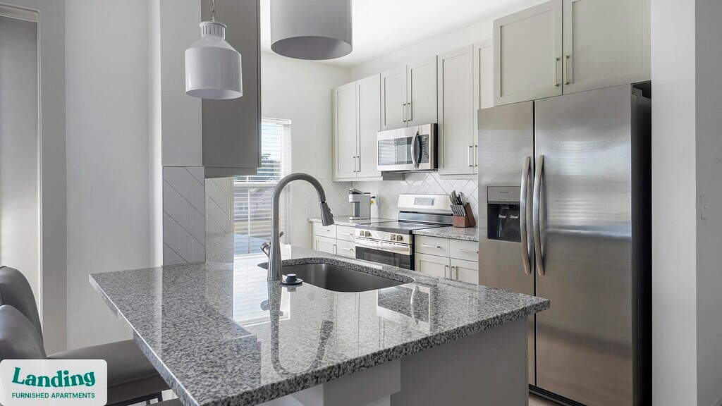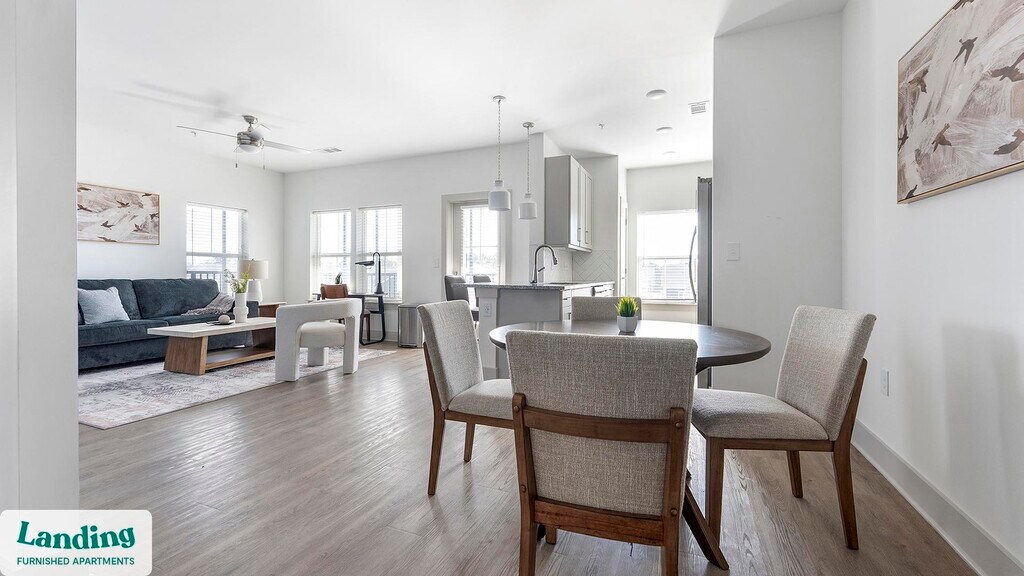 Landing offers flexible lease terms from weeks to months. Please always visit our website or contact us for the latest pricing & availability. Stay longer, save more: 6-Month Minimum base rent: starts at $2965/mo 12-Month Minimum base rent: starts at $2515/mo Landing offers flexible leases across a network of over 35,000 fully-furnished apartments throughout 375+ cities so you can rent on your terms, practically anywhere, and avoid the hassle of paying deposits or application fees. Visit to learn about all the benefits of a Landing membership, see our competitive up-to-date pricing, explore available apartments, take virtual tours, and make reservations online without jumping through traditional rental hoops. Landing's apartments at Arcadia at Carolina Forest are designed for comfortable, easy living, with the ability to stay as long as you like. Experience living with Landing Every apartment is outfitted with all the modern essentials including: custom-designed furnishings, a fully-equipped kitchen with deluxe stainless steel appliances, a gourmet coffee maker, premium linens, Smart TVs, and incredibly fast, reliable internet for working from home. When you live with Landing, you'll enjoy a hassle-free experience with the added benefit of 24/7 access to our dedicated member experience team. Some of the nitty-gritty: a background check and proof of income are required; we're completely smoke-free; bundled utility packages and pricing vary based on length of stay; pet-friendly options available; listed price reflects a 12-month minimum stay.