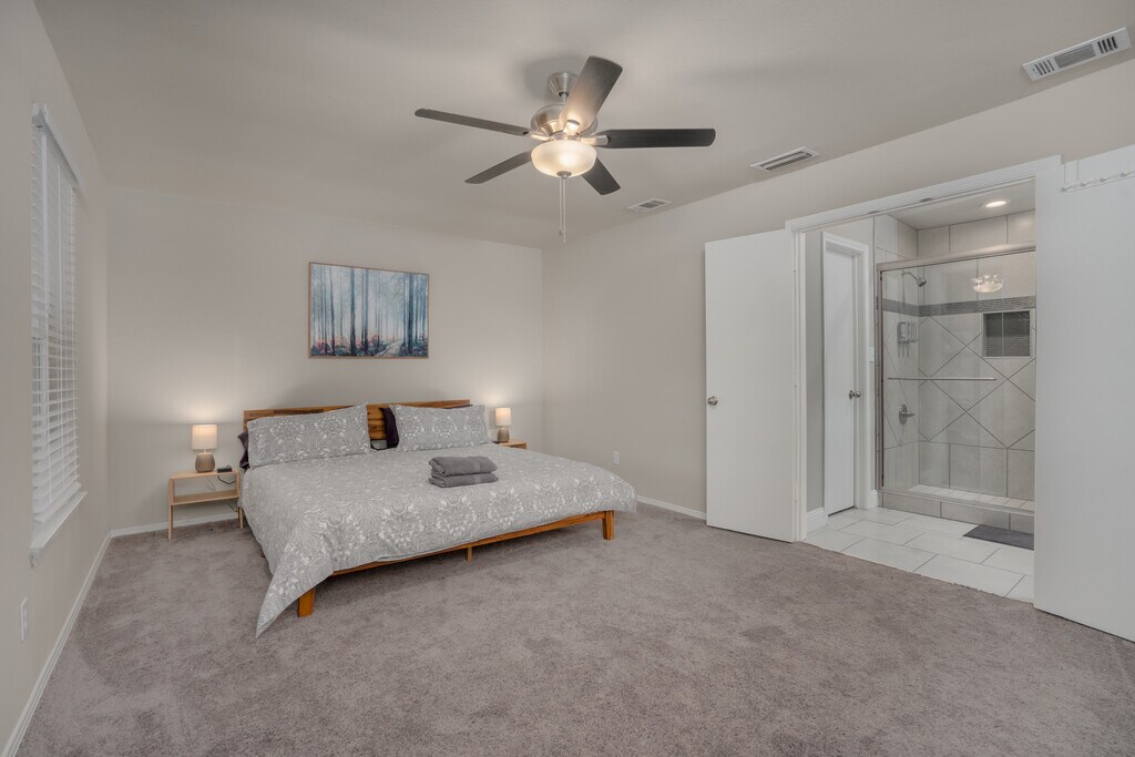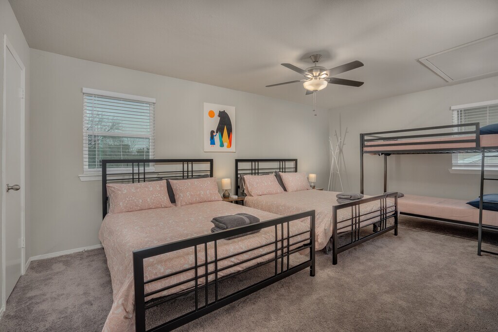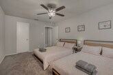 Fully furnished!! Welcome to your home away from home! Step inside and be greeted by sleek and modern design, with tasteful decor and comfortable furnishings throughout. The large living area is perfect for gathering with friends and family, while the fully equipped kitchen has everything you need to cook up a storm. But the real highlight of this property is the backyard. Lounge on the patio and soak up the sun or take a dip in the sparkling pool and cool off on a hot day. ? KITCHEN ? Looking for a kitchen that will take your culinary creations to new heights? Look no further! You will be greeted by sleek stainless-steel appliances that gleam, expansive granite countertops that provide ample space for meal prep and modern, fully equipped cabinetry designed to inspire your inner chef. Whether you are preparing a quick snack or an elaborate feast, this kitchen has everything you need to make it a success. ? Fully equipped kitchen for all your cooking needs ? Standard appliances, including fridge, freezer, stove, oven, dishwasher, and microwave ? Cooking essentials including pots, pans, utensils, etc. ? Plenty of counter space and cabinets ? DINING ROOM ? In this stylish dining room, contemporary design meets classic elegance. Gather around our sturdy wooden table, which comfortably seats up to 8+ people, and enjoy a delicious meal in the company of friends and family. And as you dine, take in the beautiful artwork that adorns the walls, adding a pop of color and personality to the space. ? Dedicated dining room ? Dining table with seat settings for 8+ guests ? Visual artwork on display ? Place settings and dining utensils ? LIVING ROOM ? Comfort and style are seamlessly combined in this spacious living room! With high-speed WiFi and a 55" SmartTV, you will have everything you need to stay connected and entertained during your stay. Relax and unwind on our nap-worthy couches, where you can sink into plush cushions and snuggle up with a good book or your favorite movie. And as you look around, take in the beautiful artwork that adorns the walls, adding a touch of sophistication and personality to the space. ? Couch and chairs for plenty of seating ? Coffee table, designer rug, and artwork ? 55” SmartTV and high-speed Wi-Fi ? A warm inviting environment for all to enjoy ? BEDROOMS ? Our tranquil and serene bedrooms offer the perfect oasis for a good nights sleep. With plenty of sleeping space for up to 20 guests, you will have ample room to stretch out and relax. Each bedroom has been thoughtfully furnished with your comfort in mind, from plush bedding to cozy blankets and pillows. As you drift off to sleep, you'll be surrounded by a peaceful atmosphere, ensuring a restful and rejuvenating stay. ? 5 bedrooms furnished with your comforts in mind ? Master ensuite with a king-sized bed, dresser, and 42” SmartTV ? 4 additional bedrooms with queen and bunk beds for plenty of sleeping space ? Can comfortably sleep up to 20 guests ? BATHROOM ? Our bathrooms offer a practical and functional space for all your hygiene needs. Equipped with both a bathtub and a walk-in shower, you'll have options for refreshing yourself during your stay. Clean, well-maintained, and equipped with essential toiletries, you will find everything you need here! ? 2.5 private bathrooms ? Stand-up walk-in shower for easy access ? Relaxing bathtub for warm bubble baths ? Essential toiletries included such as towels, soap, toilet paper, etc ? BACKYARD ? Welcome to your very own tropical oasis! Our backyard is the perfect retreat for those looking to relax and unwind. Take a dip in our inviting pool or bask in the warm sunshine on one of our comfortable poolside loungers. Our outdoor dining area is the perfect place to enjoy a delicious meal prepared on our BBQ grill, while surrounded by lush greenery and palm trees. And when the sun sets, the patio provides a cozy spot for sipping drinks and enjoying the evening breeze. ? Swimming pool with loungers ? Outdoor BBQ grill ? Patio area with outdoor dining furniture ? Fully fenced yard for your privacy ? OTHER AMENITIES ? Free parking is available to all guests in the garage or on the private back driveway. If additional parking is needed, feel free to park on the neighborhood streets as well. The laundry room is fully equipped with a washer and dryer should you need to refresh your clothing during your stay. Lastly, we must stress that we do NOT allow parties or large unauthorized gatherings of any sort at our property. We are adamant about only welcoming families and groups who are looking to relax and enjoy the beautiful stunning backyard and the amenities the home has to offer.