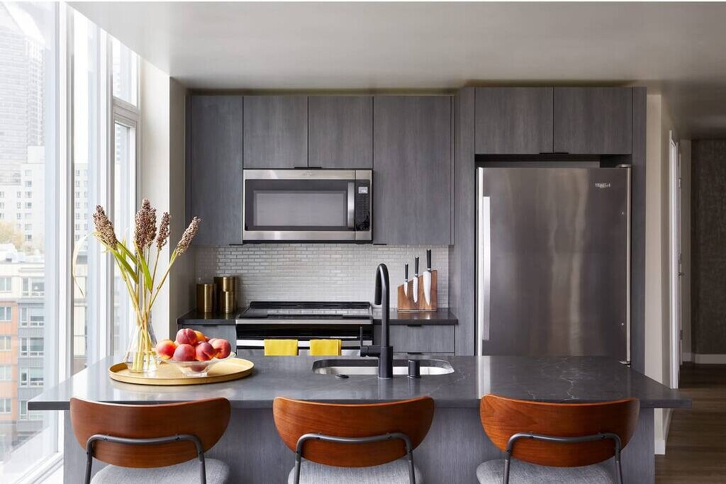 This designer-furnished alcove studio apartment features cool, modern finishes and an open layout filled with natural light from floor-to-ceiling windows. The kitchen is equipped with stainless steel appliances and quartz countertops, and technology like keyless entry, motorized shades, and a Nest thermostat simplifies daily life. You'll have access to the entire space, plus all of the building amenities during your stay, including a rooftop lounge with skyline views, an entertainment lounge with a billiards table, a fitness center, co-working spaces with high-speed Wi-Fi, BBQ grills and firepits, a dog run, a work lounge, bike storage, a demonstration kitchen and bar, a photo booth, a coffee bar, and bookable conference rooms. Culture is always brewing in First Hill—a welcoming residential neighborhood near the city’s best restaurants, shops, and nightlife. Walk to Seattle University, or hop on the streetcar and head downtown. Views stretch from the skyline to the Puget Sound. We have strengthened our on-site cleaning and disinfecting procedures based on CDC coronavirus guidance. These actions include increased building cleaning, including disinfecting of high-traffic areas such as elevators, vestibules, common areas, all hallways, and the fitness center. Cleaning teams are using hospital-grade cleaning and disinfectant solutions throughout the building and in guest rooms. Additional hand sanitizer and disinfectant wipes will be made available at concierge desks and common areas. All of our guests will be screened beforehand in order to ensure the best possible experience for everyone. A lease must be signed after confirming online. [SI]