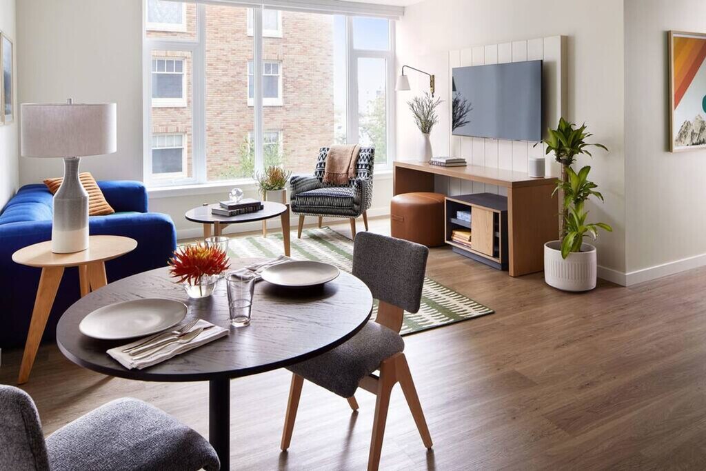 Experience the charm of First Hill in this designer-furnished 1-bedroom apartment with an office. Featuring cool, modern finishes and open layouts filled with natural light, this apartment simplifies daily life with technology like keyless entry and motorized shades. The office space is equipped with an adjustable desk, ergonomic chair, and computer monitor screen to meet all your work-from-home needs. This apartment offers access to a range of building amenities, including a rooftop lounge with skyline views, an entertainment lounge with a billiards table, a fitness center, co-working spaces with high-speed Wi-Fi, BBQ grills and firepits, a dog run, a work lounge, bike storage, a demonstration kitchen and bar, a photo booth, a coffee bar, and bookable conference rooms. Make yourself at home and enjoy the full range of facilities during your stay. The apartment offers a variety of amenities including a fitness center, entertainment lounge, and laundry service. Additional services such as bike storage and bookable conference rooms are also available. Culture is always brewing in First Hill, a welcoming residential neighborhood near the city’s best restaurants, shops, and nightlife. You can walk to Seattle University or hop on the streetcar to head downtown. Enjoy views stretching from the skyline to the Puget Sound. With plenty of restaurants, shopping, and nightlife just steps away and public transportation right outside your front door, you'll love exploring the city without the hassle of a car. We have strengthened our on-site cleaning and disinfecting procedures based on CDC coronavirus guidance. These actions include increased building cleaning, including disinfecting of high-traffic areas such as elevators, vestibules, common areas, all hallways, and the fitness center. Cleaning teams use hospital-grade cleaning and disinfectant solutions throughout the building and in guest rooms. Additional hand sanitizer and disinfectant wipes are available at concierge desks and common areas. All guests will be screened beforehand to ensure the best possible experience for everyone. We ask that you sign the lease after confirming online. The office space includes an adjustable desk, ergonomic chair, and computer monitor screen for any work-from-home needs. A laptop computer is not included. [SI]