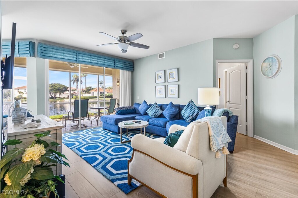 ML# 224097296 ALREADY BOOKED FOR JAN-MARCH 2026! AVAILABLE FOR APRIL 2026 FOR $5000 + 11.5% SALES TAX. $1500 SECURITY DEPOSIT & $150 EXIT CLEANING FEE. This 2 bedroom +den (which offers 2 twin beds),it is a 3 BEDROOM. A COASTAL PARADISE is just waiting for you !UTILITIES,INTERNET AND WATER,CABLE INCLUDED! Relax on your screened in lanai after a long day on the sugar sand beaches and take in the warm sunsets reflecting off of the serene lake and watch the wildlife each evening. You will never want to leave this place! Primary bedroom has a king bed and the ensuite bath has a separate soaking/zen tub and walk in shower. 2nd bedroom has a queen bed. 2nd full bath has tub/shower combo. Prepare your meals and dine overlooking the lake! WALKING DISTANCE TO THE FABULOUS COMMUNITY POOL/SPA! BBQ area by the pool!Laundry in residence.1 car garage.NO PETS,NO SMOKING,NO MEMBERSHIP AVAILABLE TO PRIVATE CLUB.