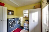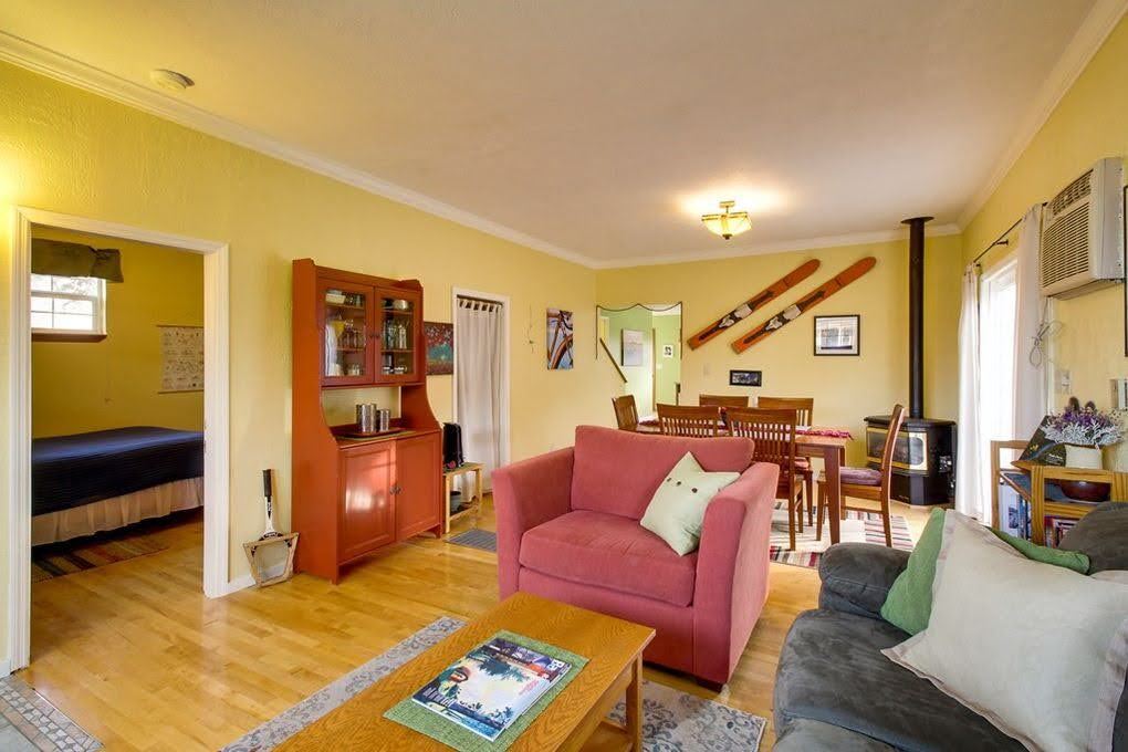 This home features a fenced backyard, a shed, and alleyway parking. The backyard includes a garden with strawberries, raspberries, and herbs. Dogs over 25 pounds are permitted.