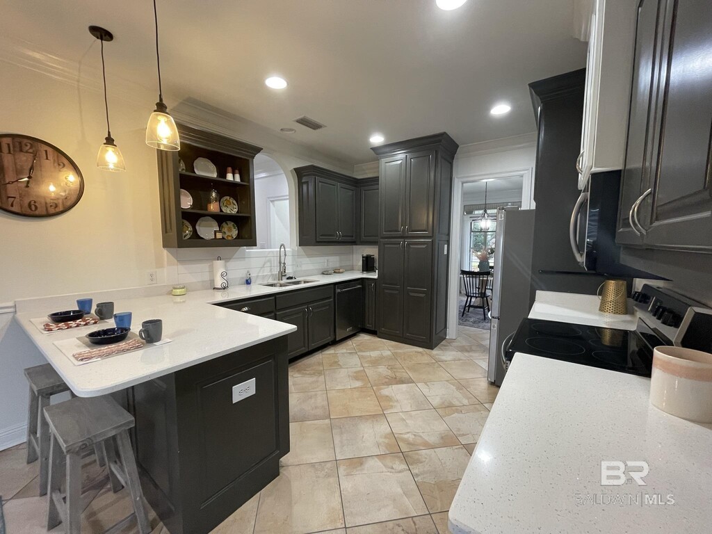Located in Fairhope,this 3 bed 2 bath home is recently updated and will be ready to tour beginning 9/5 with available move in date of 9/15. This home is 1702 sq. ft. has freshly painted interior,with tile and LVP throughout. The living room includes a white shiplap mantel and fireplace (decoration only). The kitchen has grey cabinetry and plenty of counter space. The kitchen also features newly installed quartz countertops,a new stainless steel kitchen sink with new garbage disposal along with all new stainless steel appliances. There are two seating areas for dining in both the front of the home and near the kitchen. A washer room includes a sink and a brand new washer and dryer. The primary bedroom has a built-in closet as well as an in-suite with a garden tub and standing shower. Located on the backside of the home is a patio looking out to a beautifully landscaped fenced yard with a storage shed. The two-car garage features a workbench and large overhead storage. Fenced in yard. Pets are NOT allowed. This is a non-smoking home. Lawn maintenance is included in the rent as well as pest control.