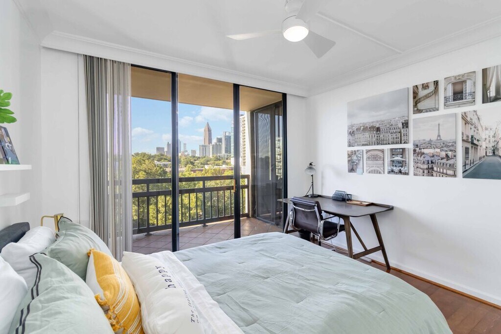 Puttogo Global GroupFully furnished 2 bed/2 bath condo for rent on one of Midtown Atlanta s most iconicstreets with stunning 11th floor views of Piedmont Park and the city skyline. This luxuryrental features two private balconies, a chef s kitchen with Monogram appliances,spacious living area with dramatic windows, and updated spa-like bathrooms withframeless glass showers and Hansgrohe fixtures. The primary suite offers an ensuitebath, queen bed, smart TV, and balcony access, while the guest bedroom doubles asan office with a dedicated desk ideal for professionals seeking a minimum 6-monthlease.Building amenities include a rooftop pool and amenity deck on the same floor, a fullfitness center, recreation lounge, 24/7 concierge, and two secure parking spaces.Located directly on Piedmont Park and steps from Midtown s best dining, shopping, andentertainment, this condo is move-in ready for executives, digital nomads, or anyonelooking for a turnkey lifestyle in Atlanta.