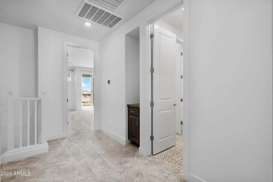 Beautiful townhome in the desirable Sterling Grove community! This home features a spacious great room with wood-look flooring,recessed lighting,and sliding glass doors leading to a private balcony. The modern kitchen offers stainless steel appliances,quartz countertops,crown-molded cabinetry,and a breakfast bar. The large primary suite includes a sitting area,balcony access,and a stylish barn door leading to the ensuite with dual vanities,a glass-enclosed shower,and a walk-in closet. The second bedroom features its own private bathroom,ideal for guests. Enjoy a quiet neighborhood and resort-style community amenities.