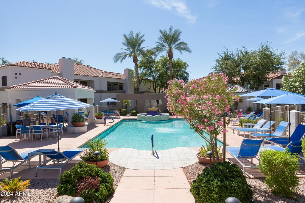 Fully renovated unit with plank tile flooring,quartz countertops,new appliances,freshly painted. round floor Scottsdale condo now available close to resort style HEATED Pool w/ ramada & Spa,Gas Grills,Business Center w/ Internet Access,Fitness Center,Steam Room,Billiards,Lounge & 8 person Theatre Room. The condo includes tile entry way,all appliances including full size washer & dryer,9ft ceilings,cable ready,ceiling fans,fireplace,spacious walk in closet & a private balcony. This floor plan designed with comfort & convenience in mind. Highly desired Scottsdale location close to everything,including great nightlife,golf,tons of dining & shopping choices,& award-winning Scottsdale schools.