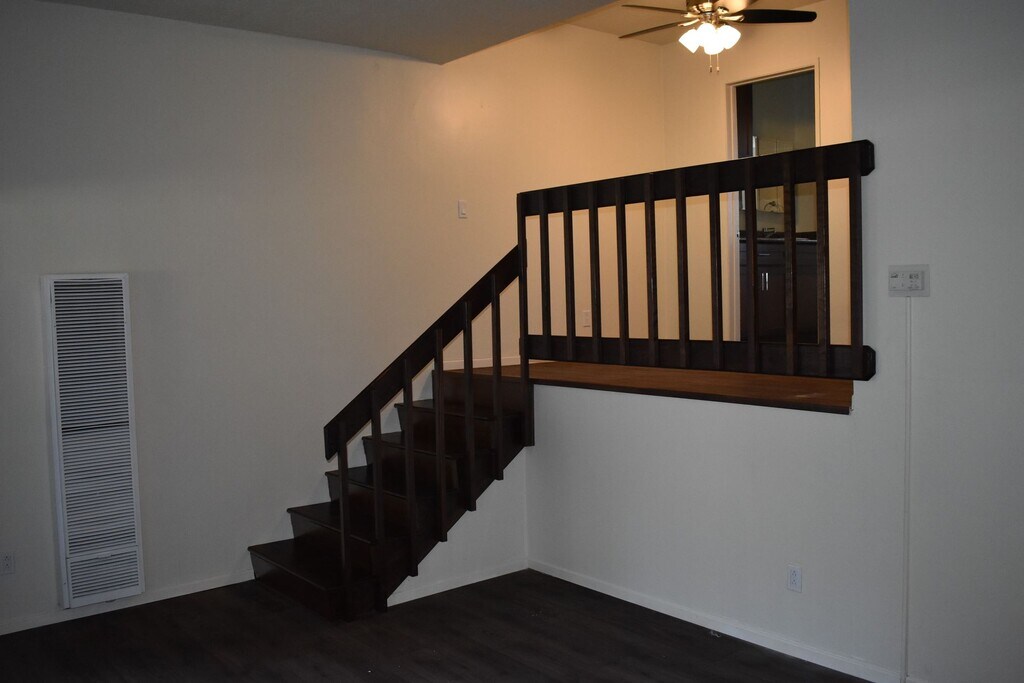 The Timbers Apartments is an award winning, lush, garden style community featuring five pools, three spas, six laundry facilities, barbeques, picnic area and much more. This remodeled one bedroom apartment home has a great loft feel. As you enter the apartment you'll find a spacious living room. Go up a small set of stairs for your kitchen, dining room, bedroom and bathroom. Features include new cabinets, granite countertops, recessed lighting, gas heating and stove, built in microwave and dishwasher and two air-conditioners.