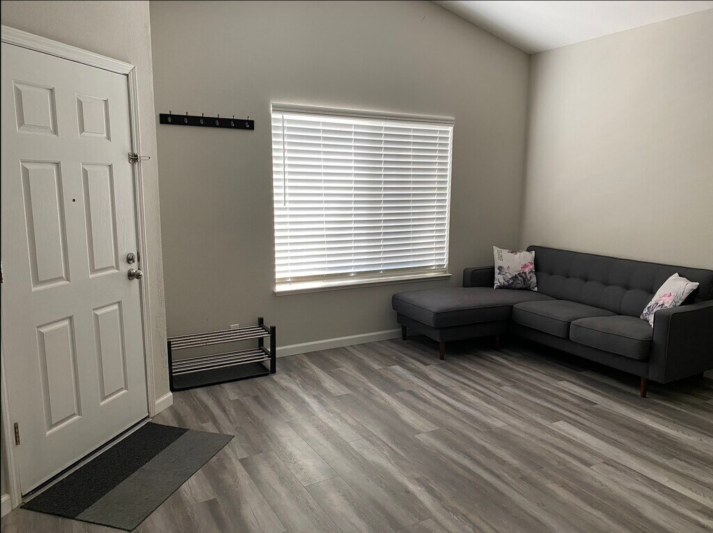 This 946 sq ft upper-unit/top condo has 2 bedrooms, 2 bathrooms, and plenty of storage. Located in a quiet and safe community, this bright home is perfect for university students and families. Includes: - Furniture: Couch, TV stand, dining table + chairs, 2 bed frames, 2 Queen-sized mattresses, nightstands, bookshelf, study desks - Appliances: Refrigerator, freezer, dishwasher, gas stove, oven, microwave, TV, in-unit washer + dryer - Central heating + air conditioning - Parking: 1-car garage and 1 driveway parking space; other community spaces and street parking available - HOA and City Services (Water*, Trash, and Sewage) *Water usage will be included in rent up to $50/month; excess usage will be charged *Gas, electricity, and Wifi not included *No pets, no smoking Nearby locations and accessibility: - Access to a trail and community swimming pool - Across the street from Playfields Park, which has playgrounds, a sand volleyball court, basketball court, and baseball field. - 1 min walk to reach Cowell & Halsey bus stop (serviced by M and W lines) - Less than 0.5 miles away from Safeway, OfficeMax, Rite Aid, restaurants, cafes, and more - 1.7 miles from UC Davis, less than 20 min bike ride to campus