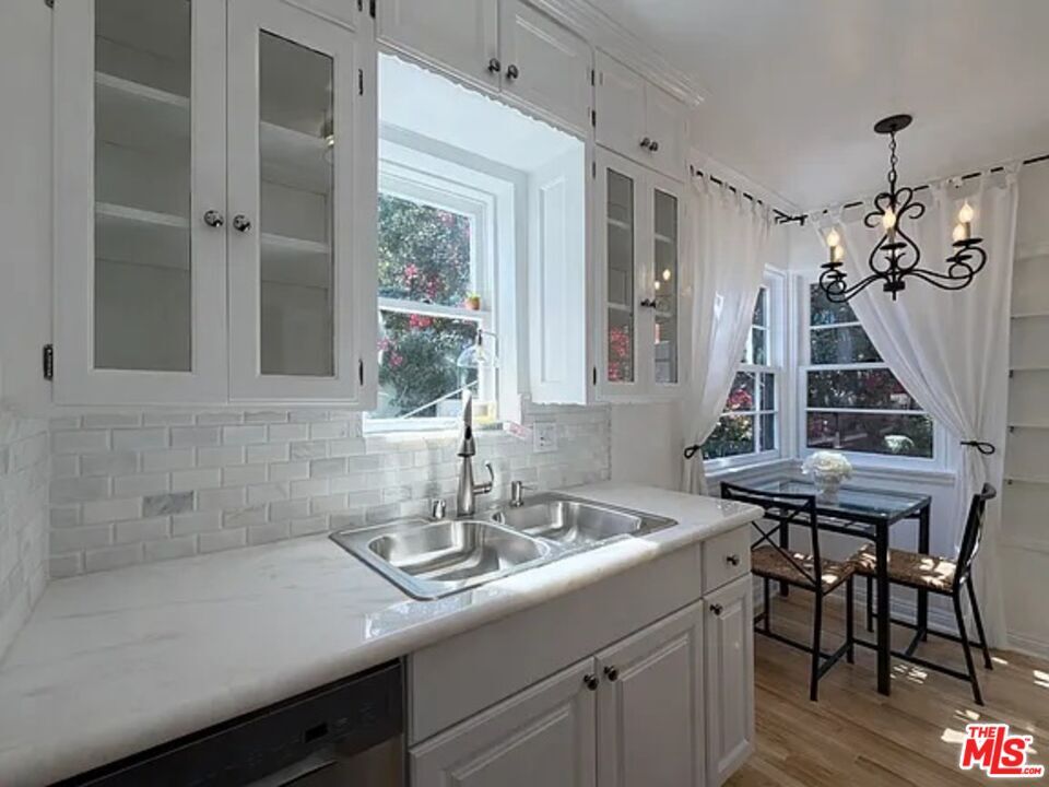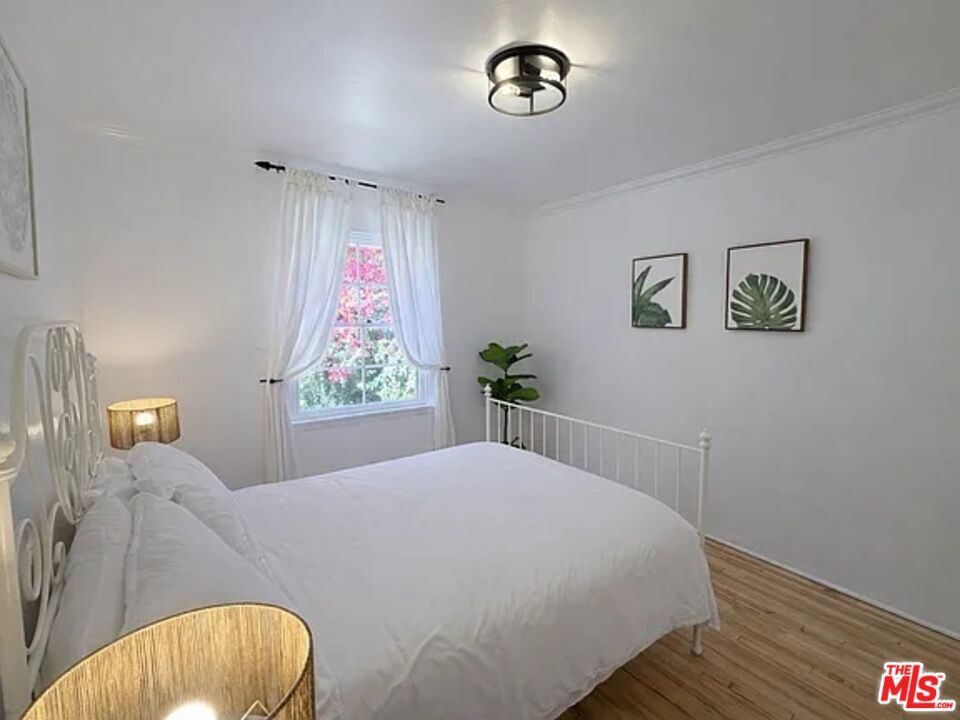 Quintessential Southern California bungalow living1920s Spanish cottage with no one above or below and only one common wall Last bungalow of the row with private, hedged in front and backyard Beautiful landscaping Only a few steps to the front door Brand new marble kitchen with original 1920s cabinetry Tumbled marble bathroom is also brand new Oasis of bougain villeas, roses, & palm trees Laundry in unit Split system A/C Newly redone hardwood floors throughout Stainless steel appliances Pet friendly Street parking (permit only) MLS# 26672831