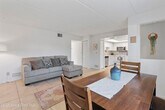 Lovely short walk to the beach 2 bedroom 2 bath flat with a open floor-plan and Mexican tile floors throughout. Recently updated Master Bath,cordless window blinds,lighting and more. Large interior laundry room with full size washer/dryer. Enjoy the ocean breeze from the screened Porch which comes equipped with a storage closet for bikes and beach gear. The community pool is located just next door. You're shopping needs and local restaurants are conveniently located just a block away. MLS # 1066135
