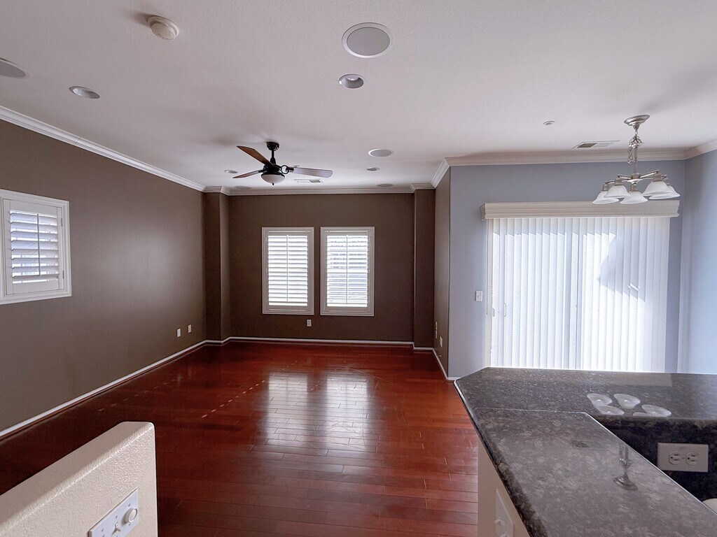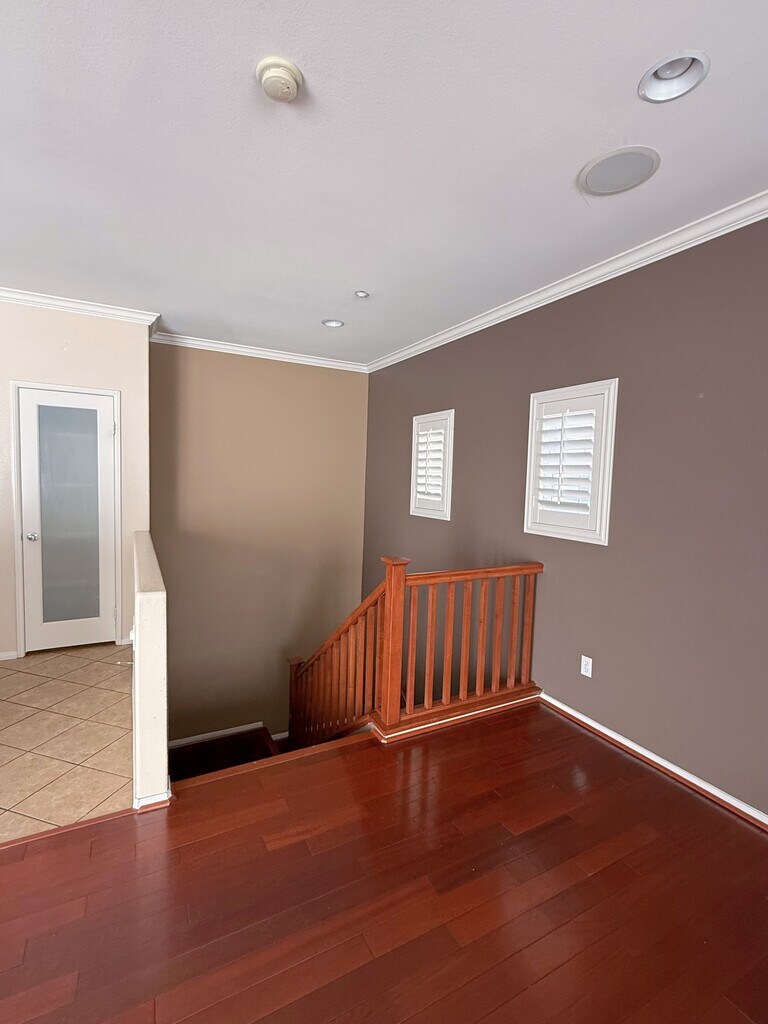 Stunning 2 Bedroom 2 Bathroom End Unit Condo with attached 2 Car Garage and Double Balconies! An open spacious layout with a designers touch that boasts hand laid real wood floors, upgraded crown molding, and beautiful shutters. The living room is open to the kitchen and dinning room. The kitchen is perfect for entertaining featuring exquisite granite counter tops, beautiful upgraded stainless steal appliances, plenty of counter space with a bar height sitting area and pantry. The dinning room has a sliding door leading to the balcony. The master bedroom is large with direct access to a private balcony, a walk in closet, and 2nd bedroom has mirror closet doors and shutters. The condo has just been replaced a new water heater and new range hood. Great community amenities include a huge pool/spa area, playgrounds and barbecue areas. This end unit condo is located in a desirable area within the community close to the entrance, mail boxes, and pool. No smoke allowed. No any animals allowed. Monthly rent: $2750.Credit score:700+. Income requested :3xmonthly rent and up.