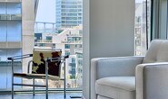 This is the ideal space to call home. 3 very spacious Penthouse units dubbed Penthaus I, II, III. Very spacious at 1300SF each and well appointed with a modern chic, yet relaxed feel. Bright and open living spaces with floor to ceiling windows in the living area to take in the stupendous view of downtown. Open dining area with Z Gallarie furniture to host friends and dine in style, connected to an open kitchen with all the necessities. A work area with comfortable furniture, spacious enough to accommodate 2 people. For each unit, sleep in either of the 2 bedrooms with a comfortable medium firm mattress and 2 bathrooms to shower in with strong water pressure and ocean blue tile work.