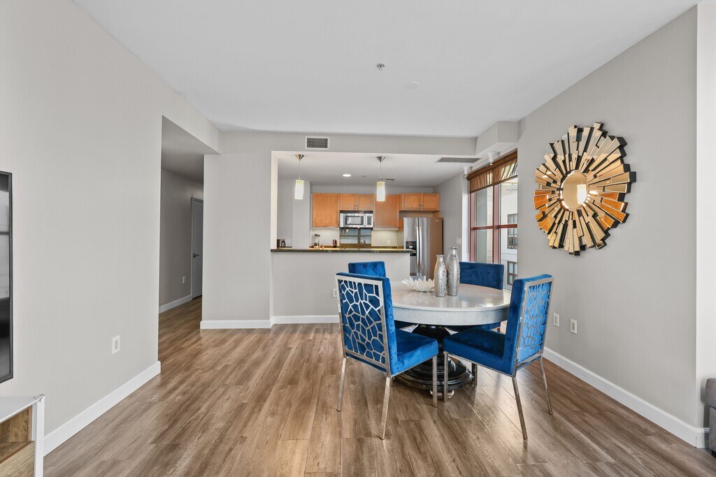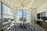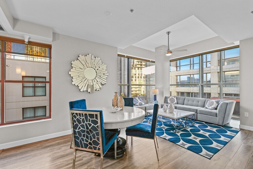 Available Jan 22, 2026 Live in a centrally located and spacious penthouse condo in the heart of Gaslamp in downtown San Diego. Enjoy the fun around within walking distance to Petco Park, stroll by the water on Seaport Village, and within walking distance right to the Convention Center. This is the ideal space to call home. Very spacious at 1300SF and well appointed with a modern chic, yet relaxed feel. Bright and open living spaces with floor-to-ceiling windows in the living area to take in the stupendous view of downtown. An open dining area with a Z Gallerie dining table and chairs to host friends and dine-in style, connected to an open kitchen with all the necessities. A work area with comfortable furniture, spacious enough to accommodate 2 people. Sleep in either of the 2 bedrooms with a comfortable medium firm mattress and 2 bathrooms to shower in with strong water pressure and ocean blue tile work. FULLY FURNISHED UNIT We pay for ALL utilities, including water, electricity, and internet. Just bring your suitcases and enjoy your stay. The pet fee is $250. This is a NON SMOKING unit, there is a $1000 remedial fee for smoking in the unit. Parking for 2 cars are provided on the premises in underground garage at no extra charge. 1 month minimum rental term, can accommodate multiple months.