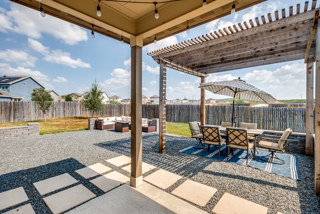 Welcome to your ideal rental home in the sought-after Harlach Farms community! Nestled on a peaceful greenbelt lot, this 4-bedroom, 2.5-bath home offers space, style, and flexibility-perfect for modern living. Inside, you'll find two expansive living areas, plus a convenient home office nook, ideal for remote work or study. The gourmet kitchen features a large center island with breakfast bar, granite countertops, and sleek stainless-steel appliances-perfect for everyday meals and entertaining alike. The spacious primary suite is a true retreat, complete with a bay window overlooking the backyard, dual vanities, a garden tub, and a separate glass-enclosed shower. Upstairs, enjoy the ease of a centrally located laundry room and plenty of room for the whole household. Step outside to a large, private backyard with a custom-built pergola-an inviting spot to relax, unwind, or entertain guests. Community amenities include a sparkling pool, a brand-new playground coming soon, and easy access to the upcoming Hwy 90 Expansion Project-bringing even greater convenience, connectivity, and access to shopping, dining, medical centers, and Loop 1604.Located just minutes from Lackland AFB and Kelly Field, this home offers the perfect blend of quiet living and accessibility. Call/text/email Madison Peterson Leasing Specialist Exquisite Property Services