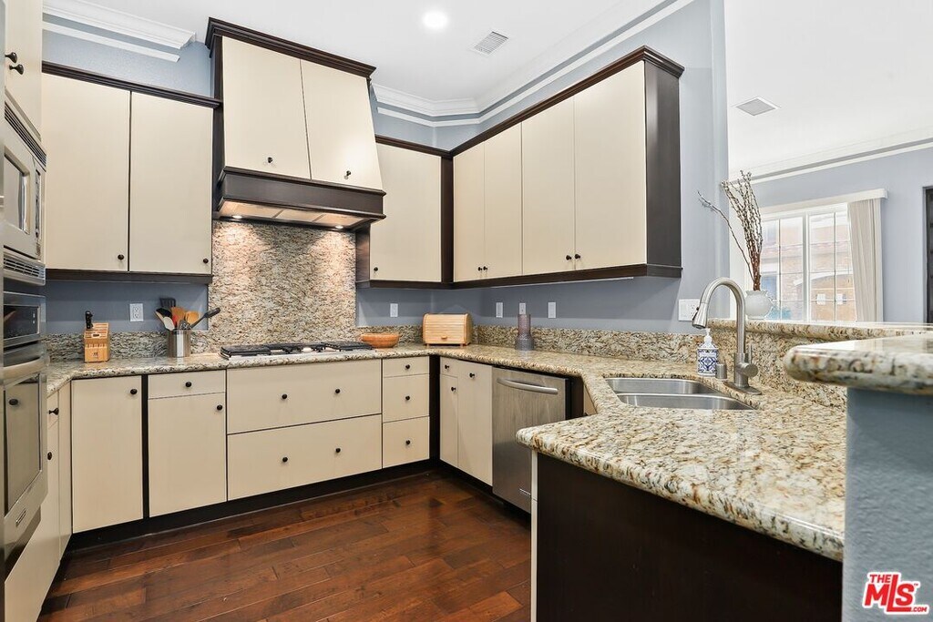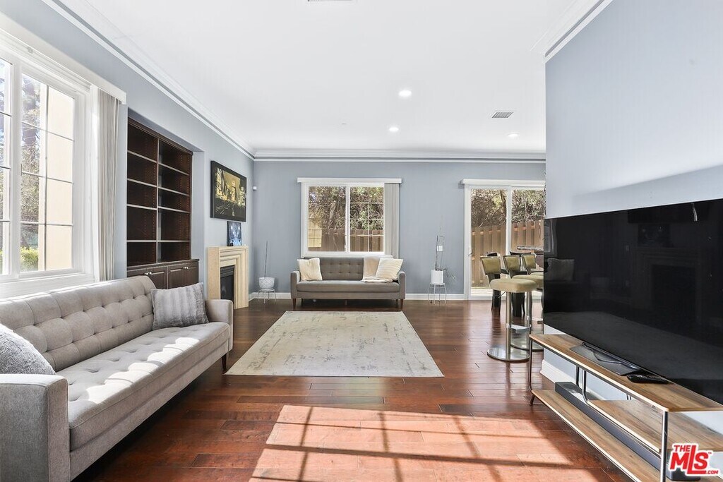 Welcome to the Vistas at Indian Oaks, where privacy and elevated living come together in one of the community's best-positioned end units. Tucked toward the rear, this 3-bedroom, ~1,910 sq. ft. residence offers a quiet setting with open hill views and a true sense of separation. Inside, the layout is open and well-proportioned, with 9-foot ceilings, a central fireplace, and natural light coming through oversized dual-pane windows. Thoughtful details like crown molding, built-ins, and recessed lighting give the home a polished, finished feel without trying too hard. The kitchen is functional and cleanly designed, featuring granite countertops, custom cabinetry, stainless steel appliances, and a 5-burner gas range. It connects seamlessly to both a casual dining area and a private patio, creating an easy indoor-outdoor flow.Upstairs, all three bedrooms are well-sized, including a primary suite that feels like a proper retreat with dual vanities, a walk-in shower, and a soaking tub. A second-floor laundry room adds convenience where it matters. Additional highlights include a direct-access two-car garage and access to a community pool and spa with sweeping valley views. Located near the Chatsworth Nature Preserve, Stoney Point Park, and the Vineyards at Porter Ranch, this is a strong combination of privacy, access, and everyday livability. MLS ID 26779011