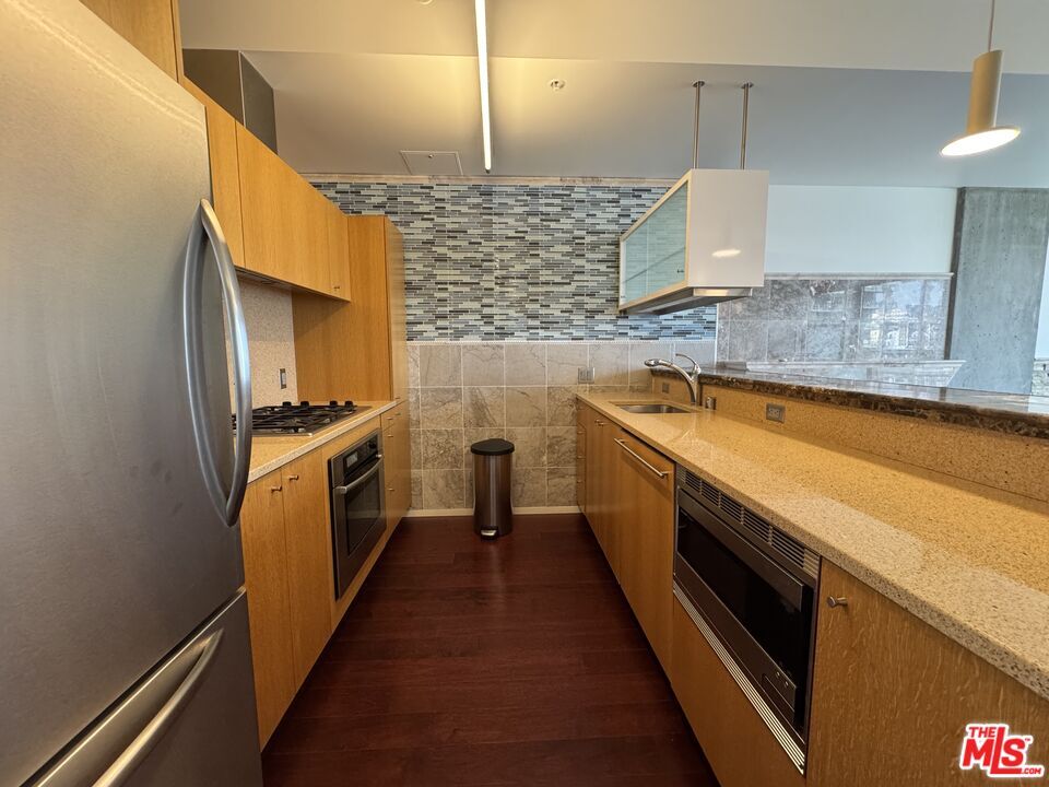 Welcome to your urban oasis at 1155 S Grand Avenue, EVO! This stunning 1-bedroom, 1-bathroom condo is located in the heart of Downtown Los Angeles, offering breathtaking views of the iconic Arena and the vibrant cityscape. Inside you'll discover a modern living space adorned with hardwood flooring creating the perfect ambiance for relaxing evenings. The open-concept layout seamlessly connects the living area to a gourmet kitchen, complete with built-in stainless steel appliances, custom cabinetry, and elegant countertops. The spacious bedroom features ample natural light and a generous closet, while the contemporary bathroom boasts high-end fixtures and finishes, ensuring a spa-like experience every day. Residents of EVO enjoy access to a wealth of amenities, including a rooftop resort pool & spa, lounge, fitness center, BBQ grills, sundeck, and 24-hour concierge service. With its prime location, you'll be just moments away from world-class dining, entertainment, and shopping, making this condo the ultimate urban retreat. Don't miss your chance to live in one of DTLA's most sought-after buildings. MLS ID 25622763