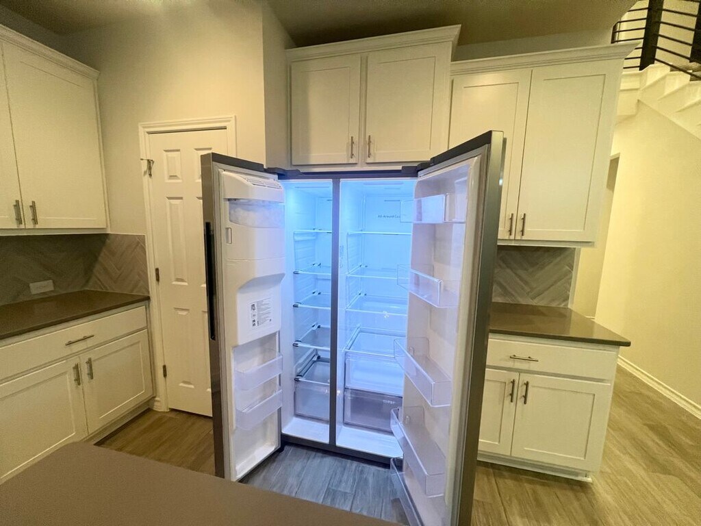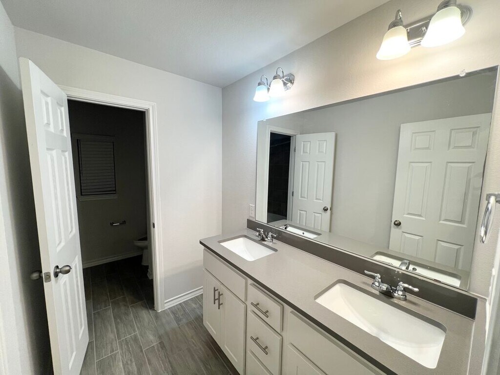 Welcome to this beautifully designed modern home located in Liberty Hill, TX. This spacious two-story residence boasts 2,702 square feet and includes five bedrooms, perfect for families or those needing extra space. With a charming brick and stone exterior, the property offers a warm, inviting atmosphere. Key features include an open-concept kitchen with white cabinetry and stainless steel appliances, complemented by a large kitchen island. The cozy living room is filled with natural light and overhead fans for added comfort. Enjoy evenings in the well-maintained backyard featuring a covered patio. The master suite offers a luxurious bathroom with dual sinks and a stylish glass-enclosed shower. Residents will also appreciate a community pool and shared outdoor space. Utilities are not included in the rent, but dedicated parking and laundry hook-ups are available. Pet-friendly, this home is conveniently located near excellent dining and shopping options. Contact us to schedule a tour and make this lovely home yours! Owner pays HOA, Tenants are responsible to pay all utilities and provide renters insurance and pest control. No smoking inside house or garage. MLS ID 7676041