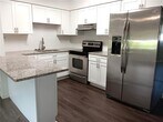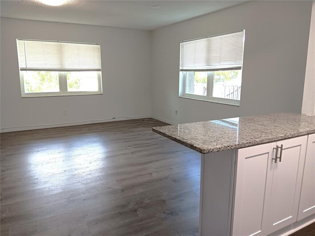 Spacious 2nd-floor walk-up two-bedroom apartment in small,quiet building in north St Petersburg near 4th street corridor. This newly renovated,800 sf unit features luxury vinyl plank flooring throughout,fresh paint,new windows,and great closet space,including a hall pantry and extra closet space near the HVAC. Updated kitchen has large breakfast bar open to the living-dining area. Granite countertops and stainless steel appliances complement new,crisp ivory cabinets. Off street parking. Coin laundry in building. Water-sewer-trash included in rent. One cat ok with $150 fee. MLS# TB8432070