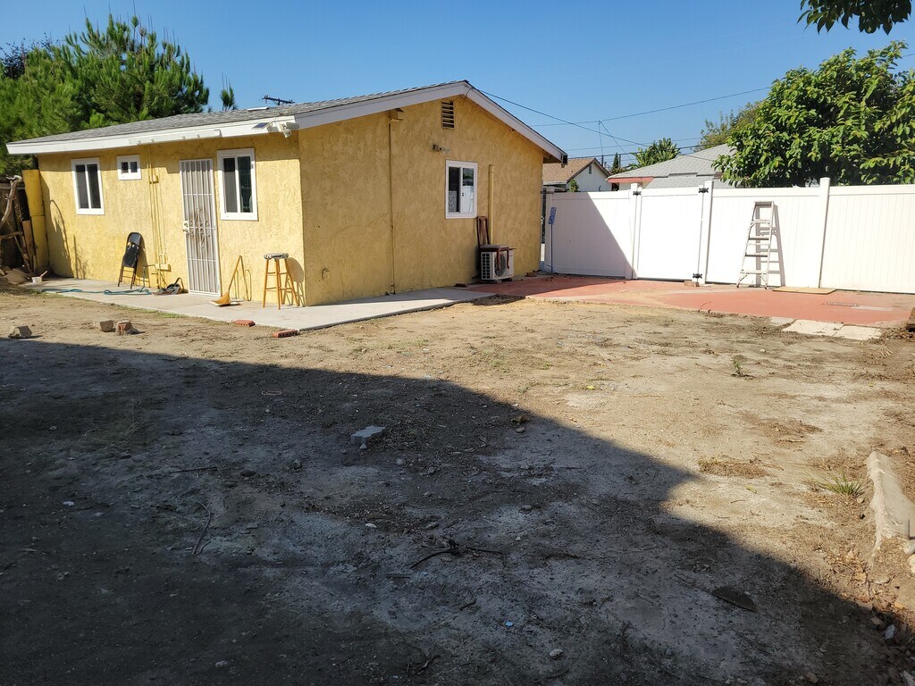 A 500sf guest house with 1 bedroom, 1 home office bonus room, a full shower bathroom is located in the back half of a large property, so it includes a private huge fence backyard of est. 500 sf concrete area and est. 1000 sf open yard. Its modern and remodeled about 3-4 yrs ago. Show only by appointment. The open full-size kitchen comes with lots of cabinets and a U-shaped stone countertop. Additional comfortable features includes new premium wood flooring, quiet & powerful 12000BTU split AC system for AC and heating, low-e dual-pane windows, complete recessed LED lights, gas range stove with exhaust fan, a large rectangle stainless-steel kitchen sink with garbage disposal, washer & dryer hookups, and space ready for refrigerator with ice line. No dishwasher. The full bathroom is fully tiled with marble. Both rooms have full size mirrored closet. It's ideal for 1-2 persons. The bonus room is perfect for home office, storage, or any functional uses. One parking is available by the front of the house. Street parking available for additional cars. Its location has easy access to Fwy 605 then northbound to 91 & 5 and southbound to 405 and 22. Close to lots of shopping & dining. Utilities not included.