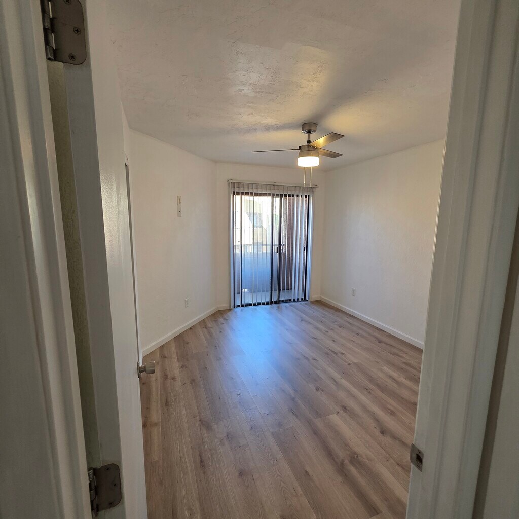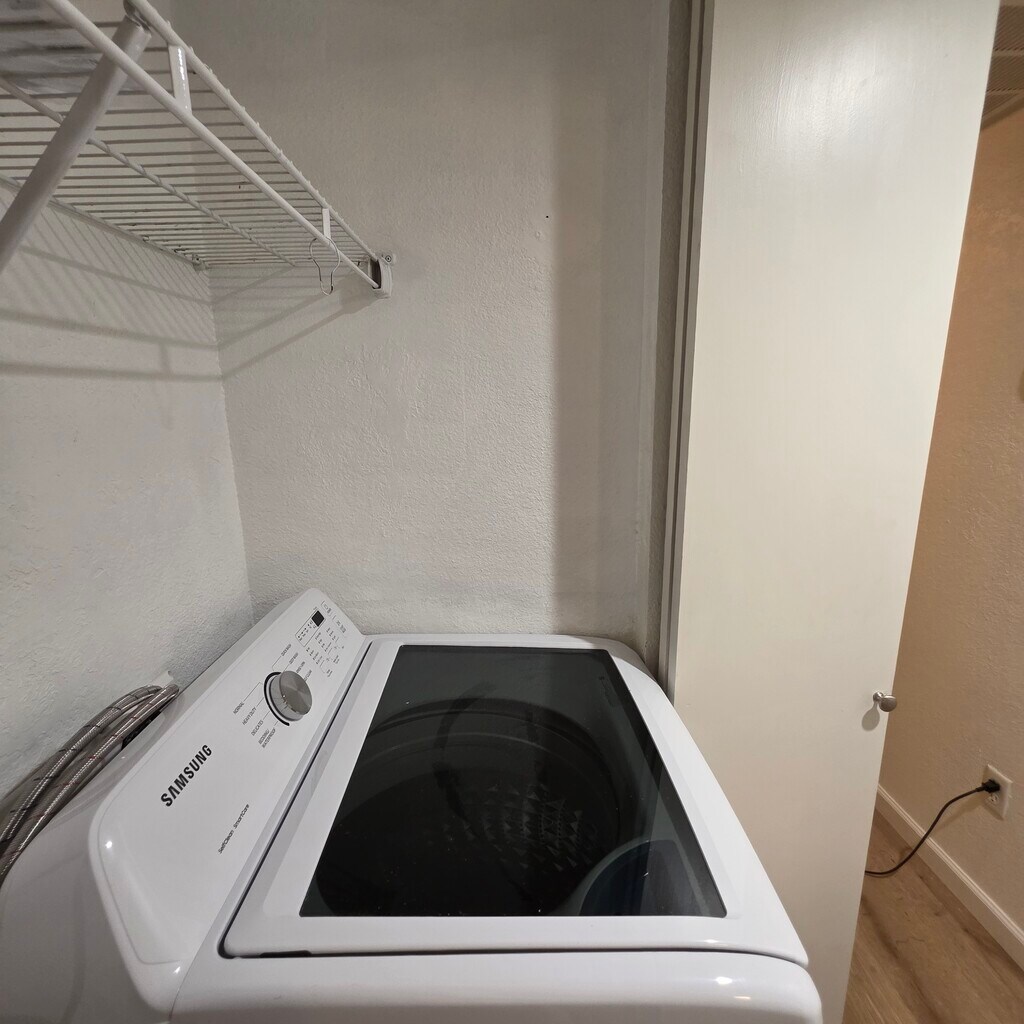 2 bedrooms, 2 bathrooms 865 sq ft second floor Condo. One assigned covered parking space and plenty of additional parking is available. Washer & dryer. New laminate floor. Owner pays monthly HOA fee, trash and water. Property is clean & move-in ready!! Complex has 1 swimming pool and an exercise room.